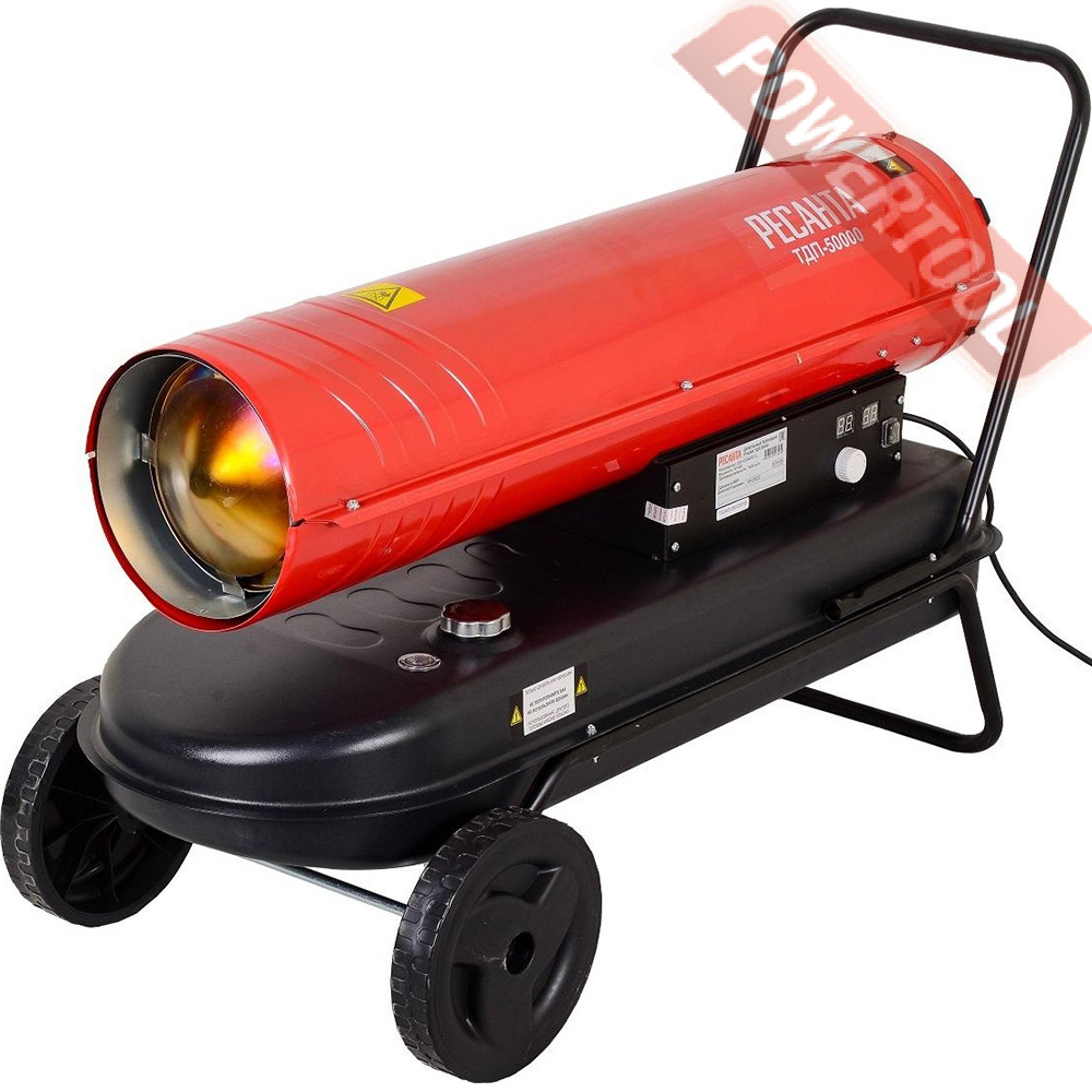 • Транспортировка. По своим характеристикам имеет компактные габариты и вес, что делает ее эргономичной и удобной для перевозки. Пневматические колеса и удобные рукоятки позволяют с легкостью перемещать тепловую пушку по объекту.