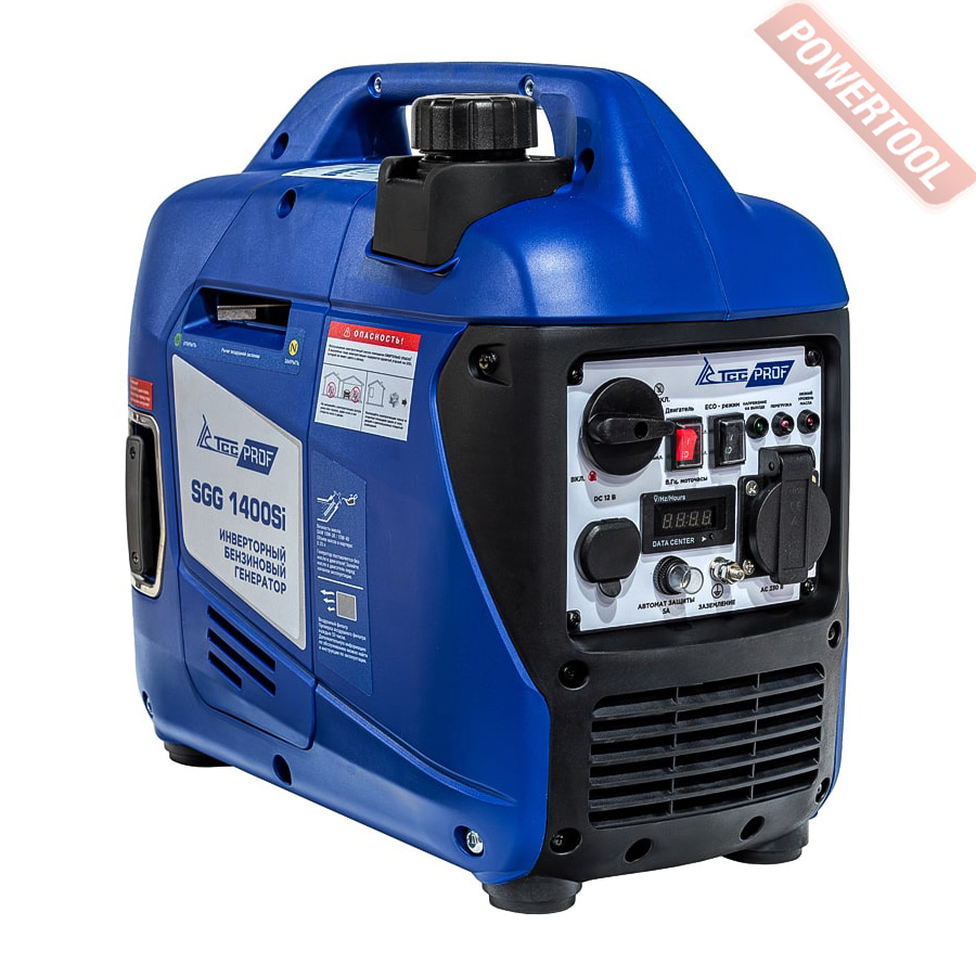 Электростанция инверторная однофазная 220 В, мощность максимальная 1,4 кВт, номинальный ток 5,2 А, 4-тактный бензиновый двигатель TSS SH60B мощностью 2,17 л.с., топливный бак 2 л, расход топлива 0,6 л/ч, емкость картера 0,4 л, 1 розетка 220В/16A, время работы без дозаправки топлива до 4 ч, цифровой дисплей, экономичный режим, датчик низкого уровня масла, шумозащитный кожух, размеры 450х270х420 мм, вес 10,5 кг.