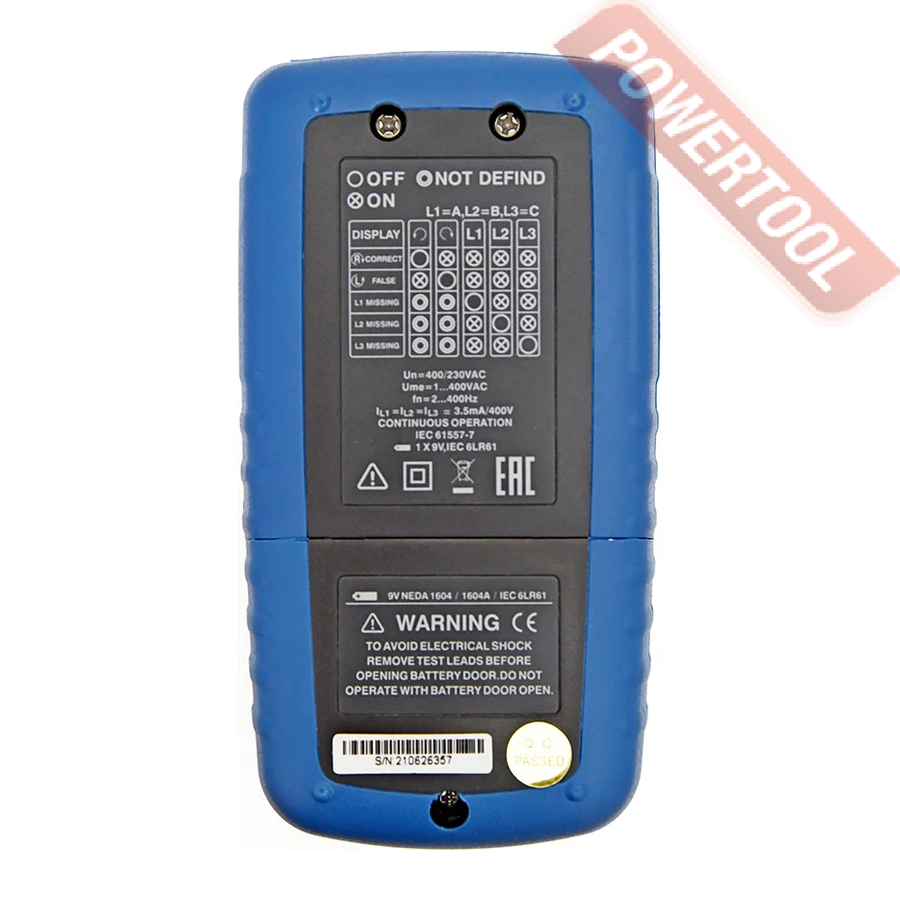 Электробезопасность является одной из важных отличительных особенностей прибора. Индикатор чередования фаз соответствует стандартам DIN VDE 0411, IEC61010 DIN, VDE 0413-7, IEC61557-7/EN61557-7. Прибор также защищён от перегрузок согласно CATIII 300V.