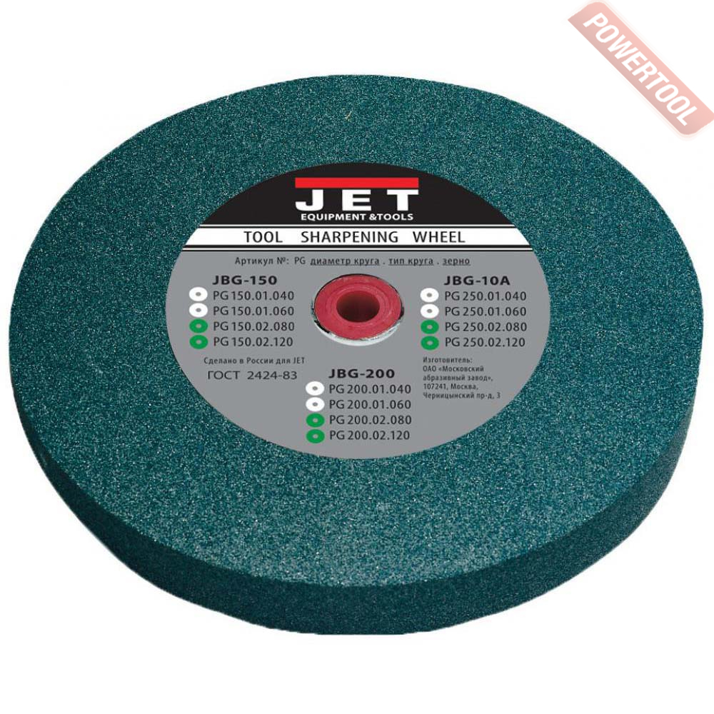 Круг шлифовальный абразивный 200х25х16 мм 120G зеленый для заточного станка JET JBG-200, IBG-8, IBG-8VS PG200.02.120