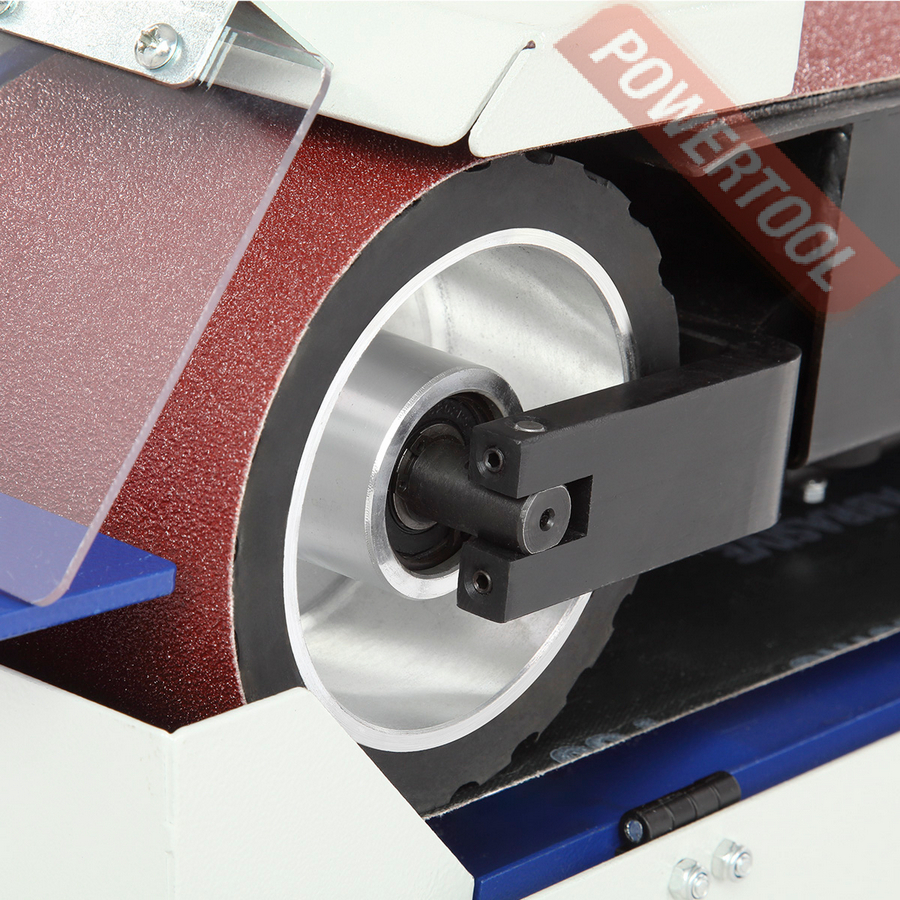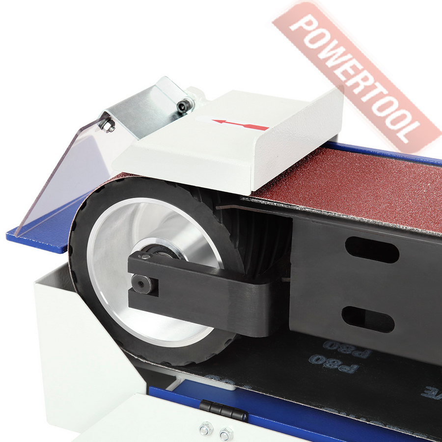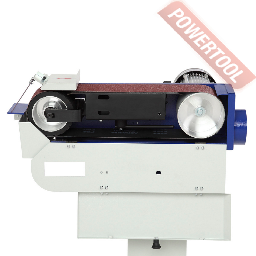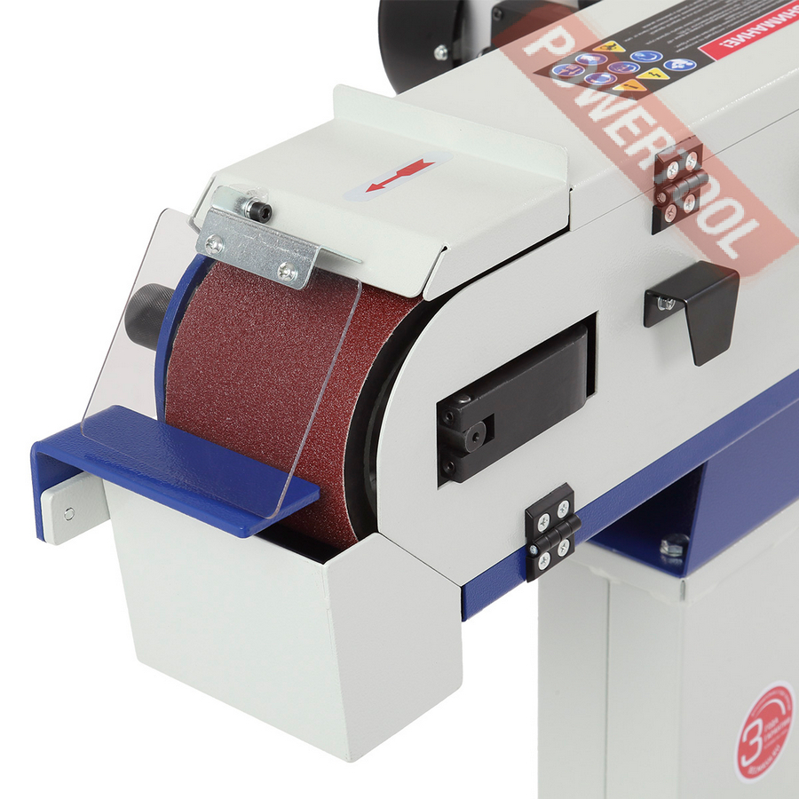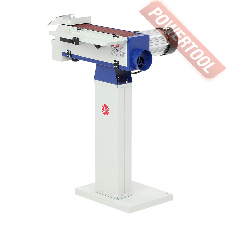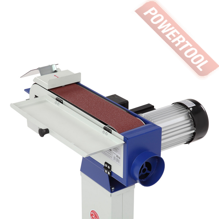 Ленточно-шлифовальный станок по металлу, мощность 1400 Вт, напряжение 220 В, шлифлента 100х1220 мм, скорость движения ленты 19 м/с, высота рабочей поверхности 865 мм, возможность подключения стружкоотсоса, диаметр отверстия для аспирации 100 мм, размер ДхШхВ 670х380х950 мм, вес 32,5 кг, шлифлента зернистость 80, регулируемый упор, защитный экран, контейнер для сбора пыли, шестигранник 2 шт.
