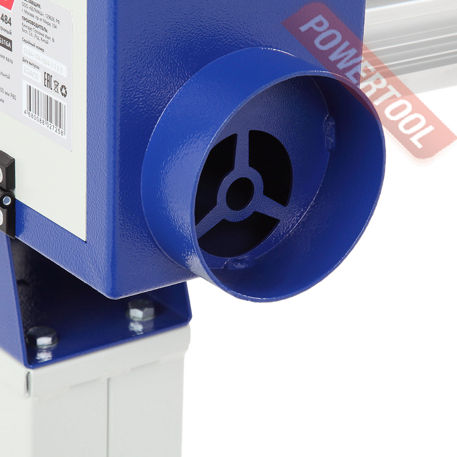 Частота вращения шлифовального барабана составляет 2800 оборотов в минуту, что достигается благодаря асинхронному электродвигателю мощностью 1400 Вт. Работает от сети 230 В. С обратной стороны шлифовального узла имеется патрубок для подключения системы пылеудаления (диаметр 100 мм).