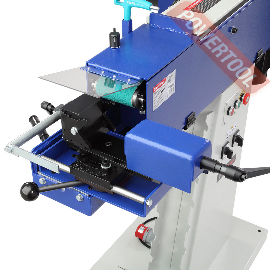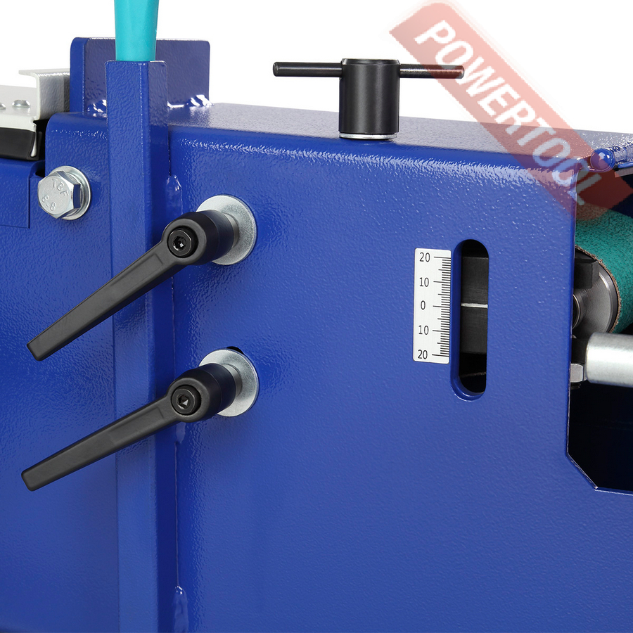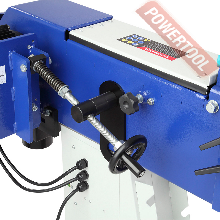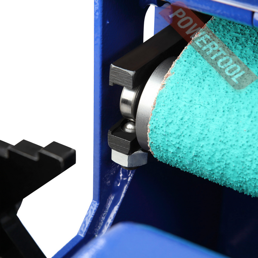 • Ведомый ролик имеет возможность перемещения вверх-вниз в диапазоне 25 мм, что позволяет настроить процесс шлифования под разные задачи и формы заготовки.