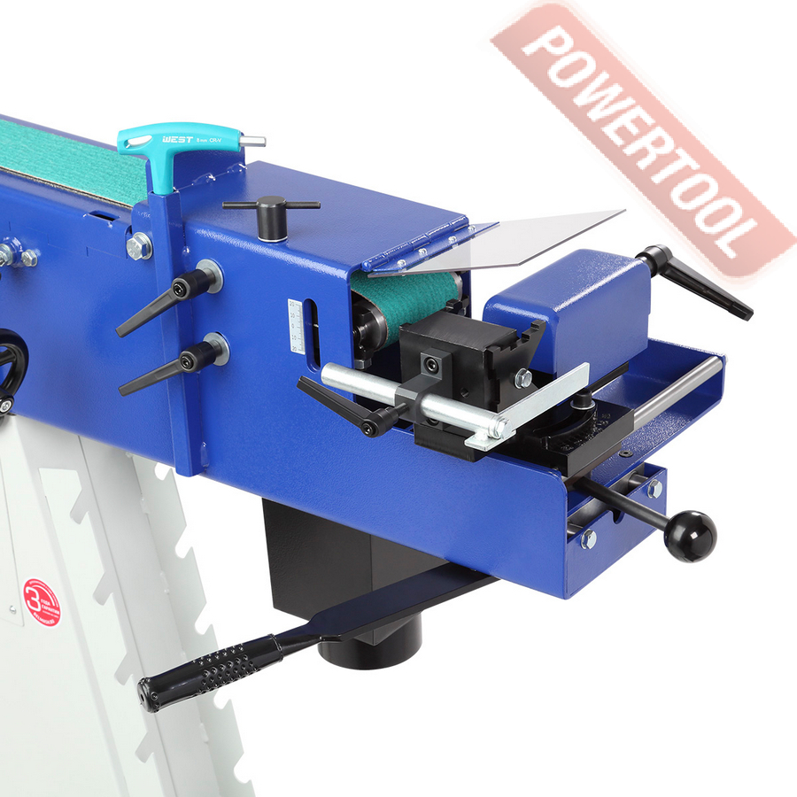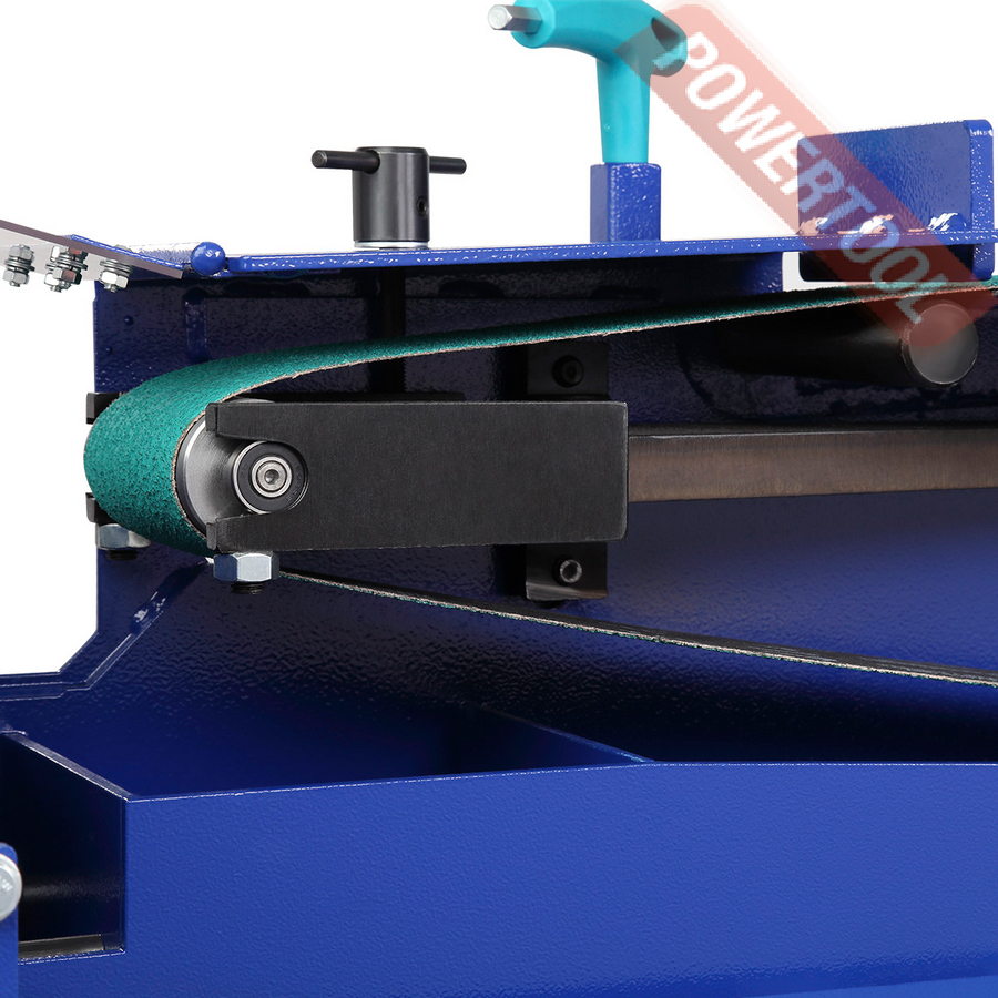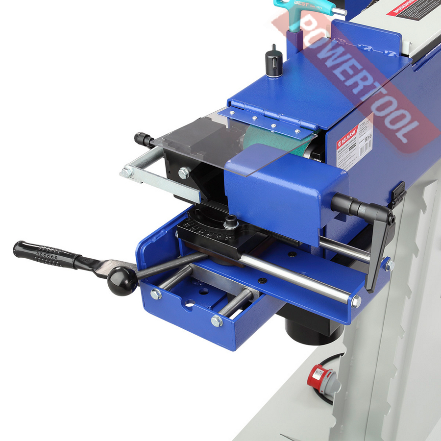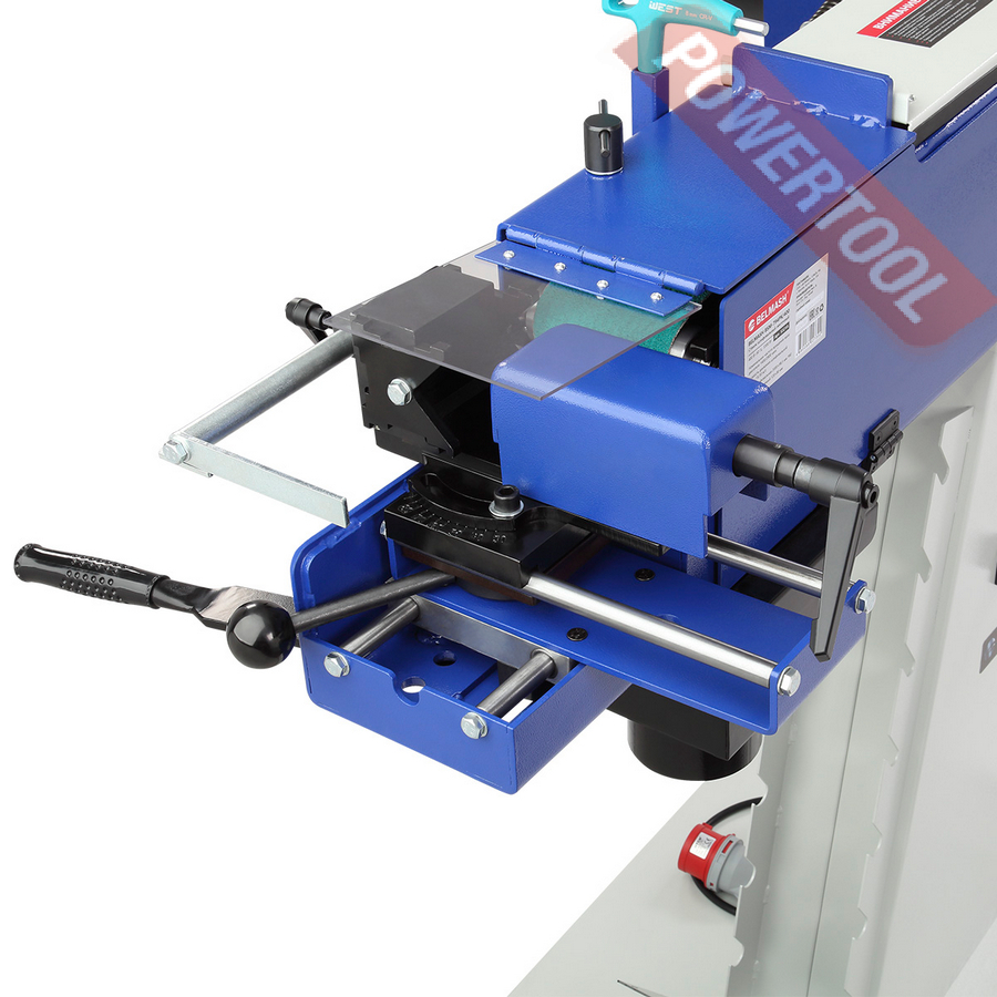 • Ведомый ролик имеет возможность перемещения вверх-вниз в диапазоне 25 мм, что позволяет настроить процесс шлифования под разные задачи и формы заготовки.