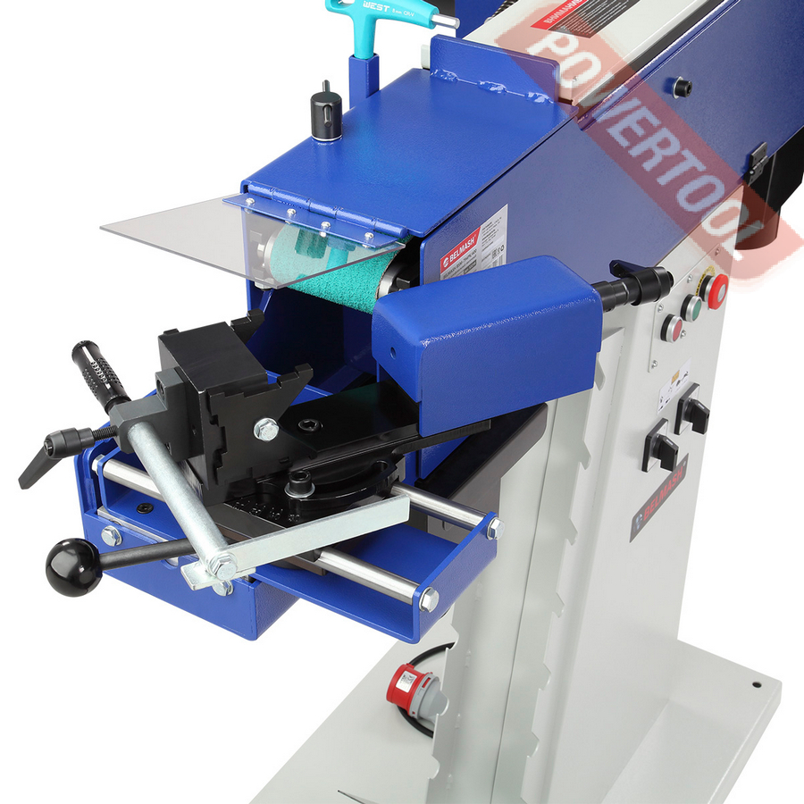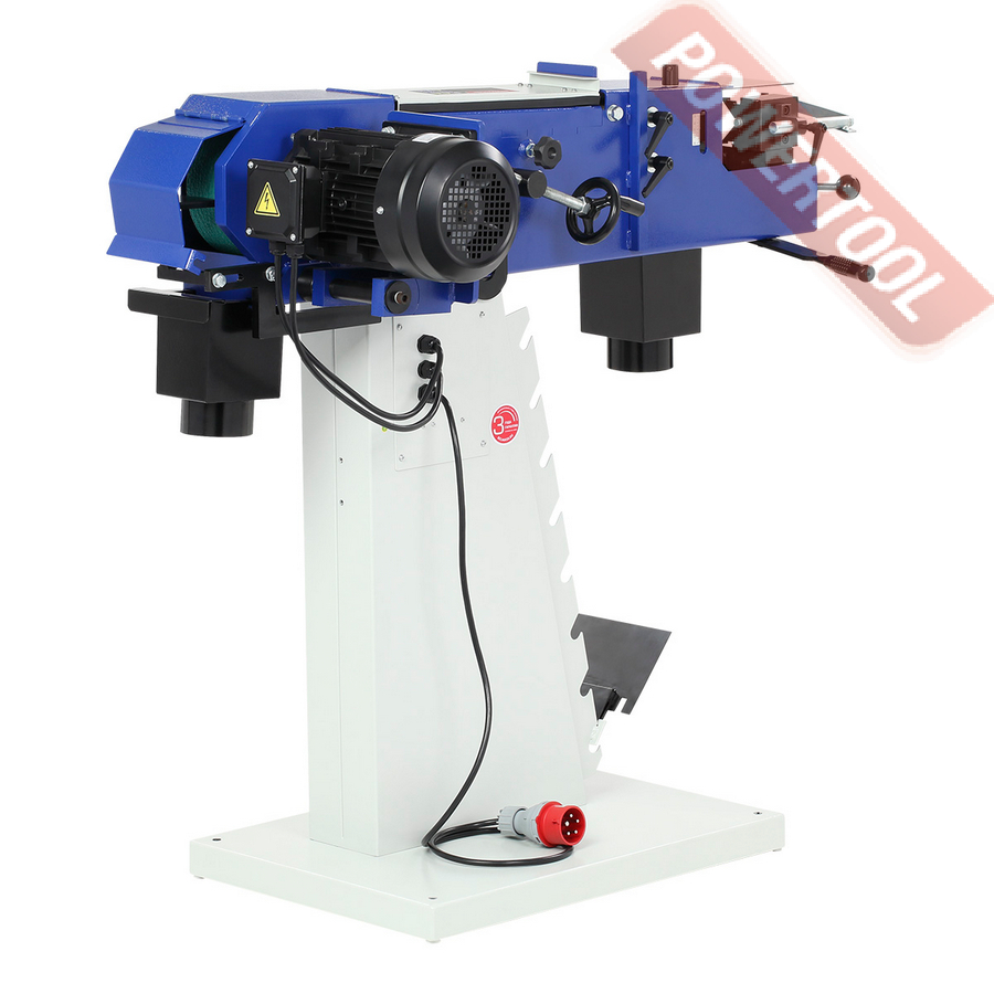 Ленточно-шлифовальный станок по металлу, мощность 3300 Вт, напряжение 380 В, шлифлента 98,5х2000 мм, 2 скорости движения ленты 15/30 м/с, угол поворота тисков от 30 до 90 градусов, высота рабочей поверхности 1090 мм, диаметр роликов 20/26/32/42/48/60/76 мм, возможность подключения стружкоотсоса, диаметр отверстия для аспирации 100 мм, размер ДхШхВ 1330х765х1340 мм, вес 145 кг, шлифлента зернистость 40, регулируемый упор, защитный экран, контейнер для сбора пыли 2 шт, шестигранник, пластина промежуточная.