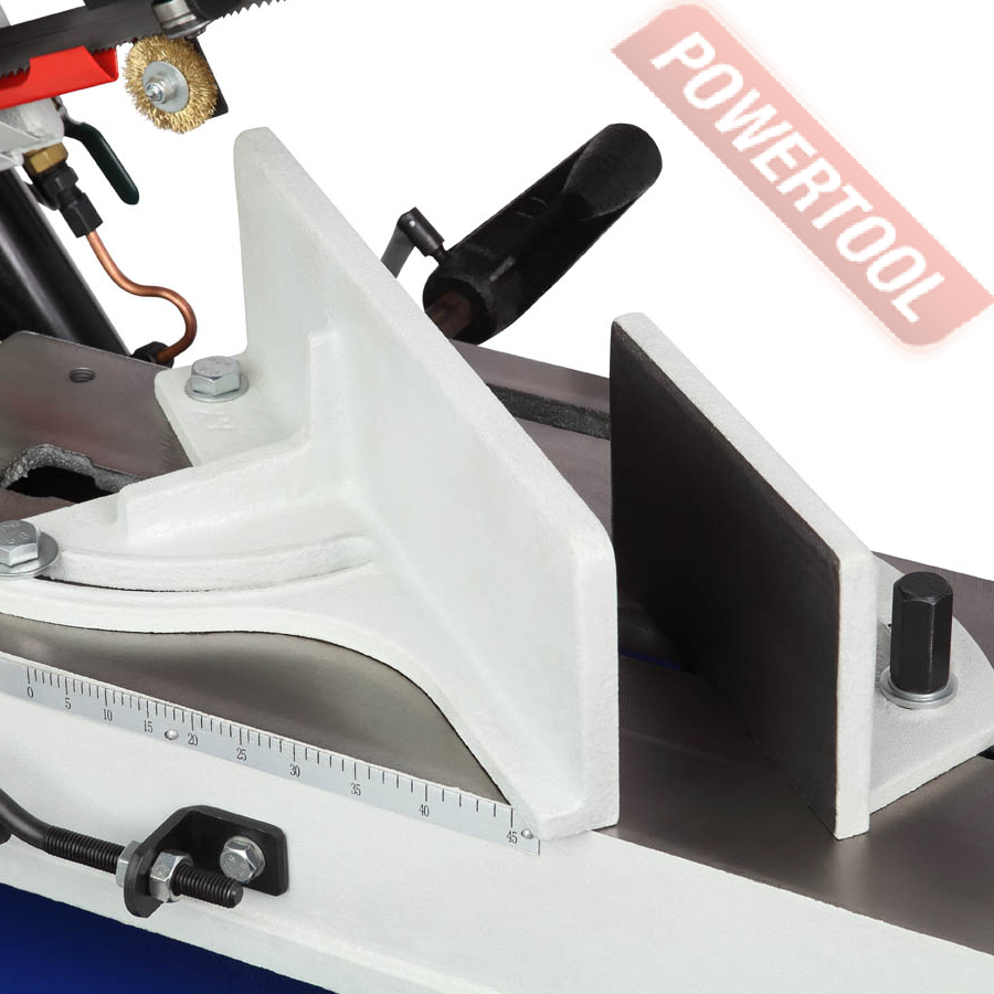 Тиски предназначены для удержания заготовки и могут быть настроены на резку под углом от 0 до 45 градусов. Выставление нужного угла производится при помощи градуированной шкалы.