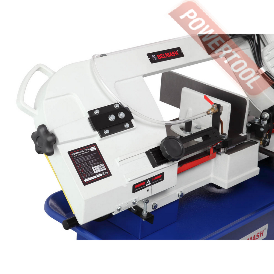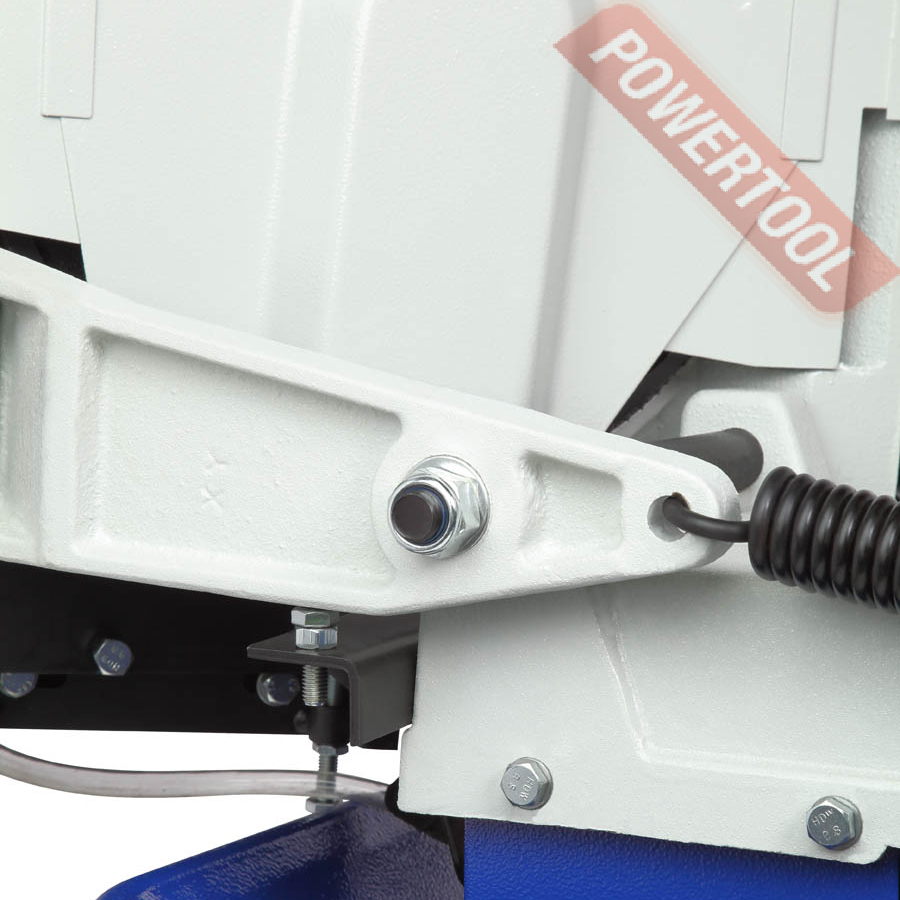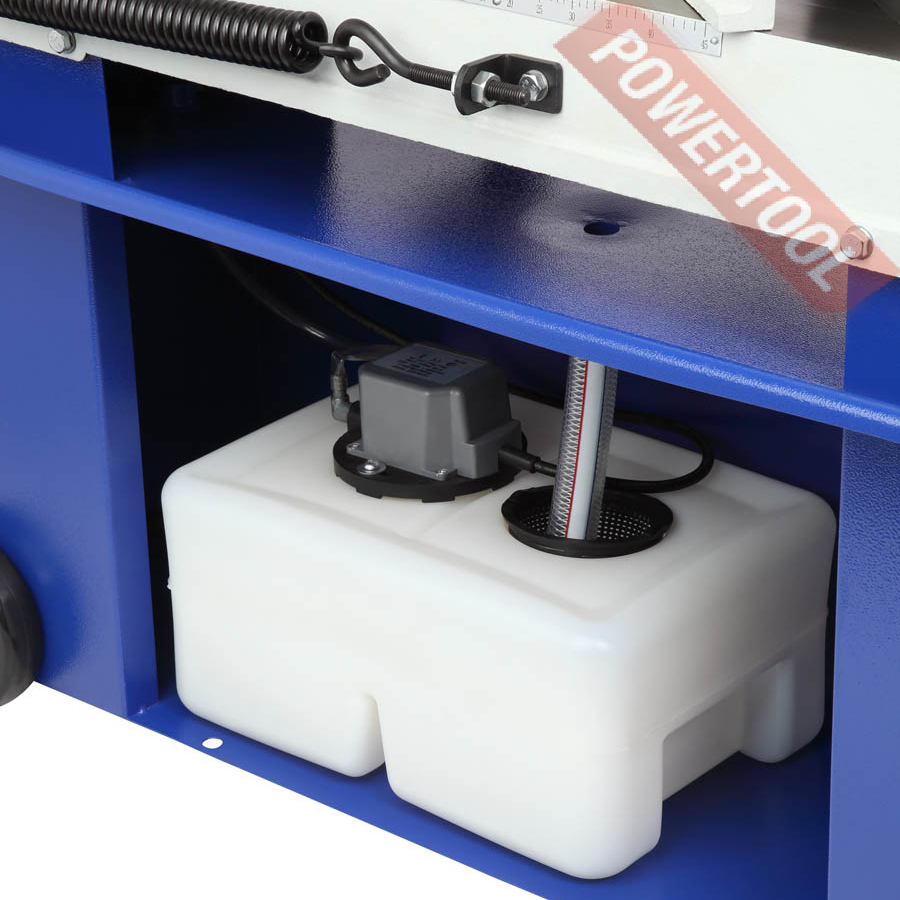 Для предотвращения перегрева режущей кромки пильного полотна станок оснащен системой подачи охлаждающей жидкости. При помощи выключателя, расположенного на пильной раме СОЖ подается на переднюю направляющую пильного полотна.