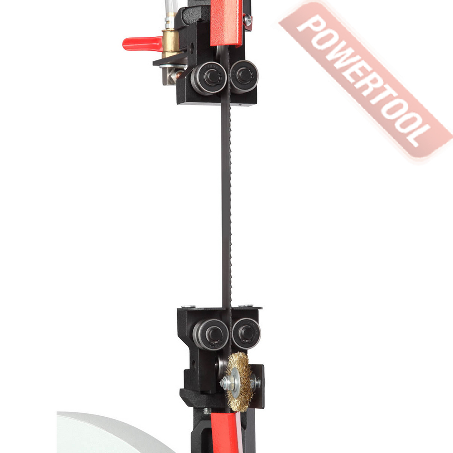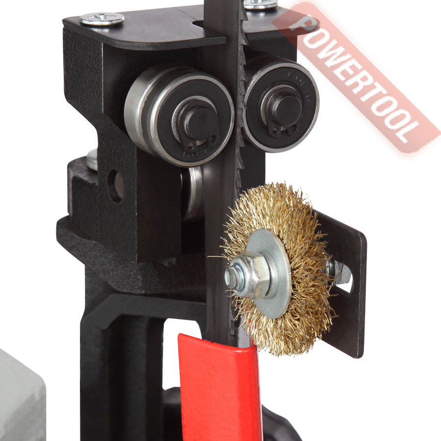 Точность распила обеспечивают направляющие пильного полотна с подшипниками. При работе направляющие нужно располагать на расстоянии 5 мм от заготовки. Это предотвратит перекручивание пильного полотна и отклонение от линии пропила.