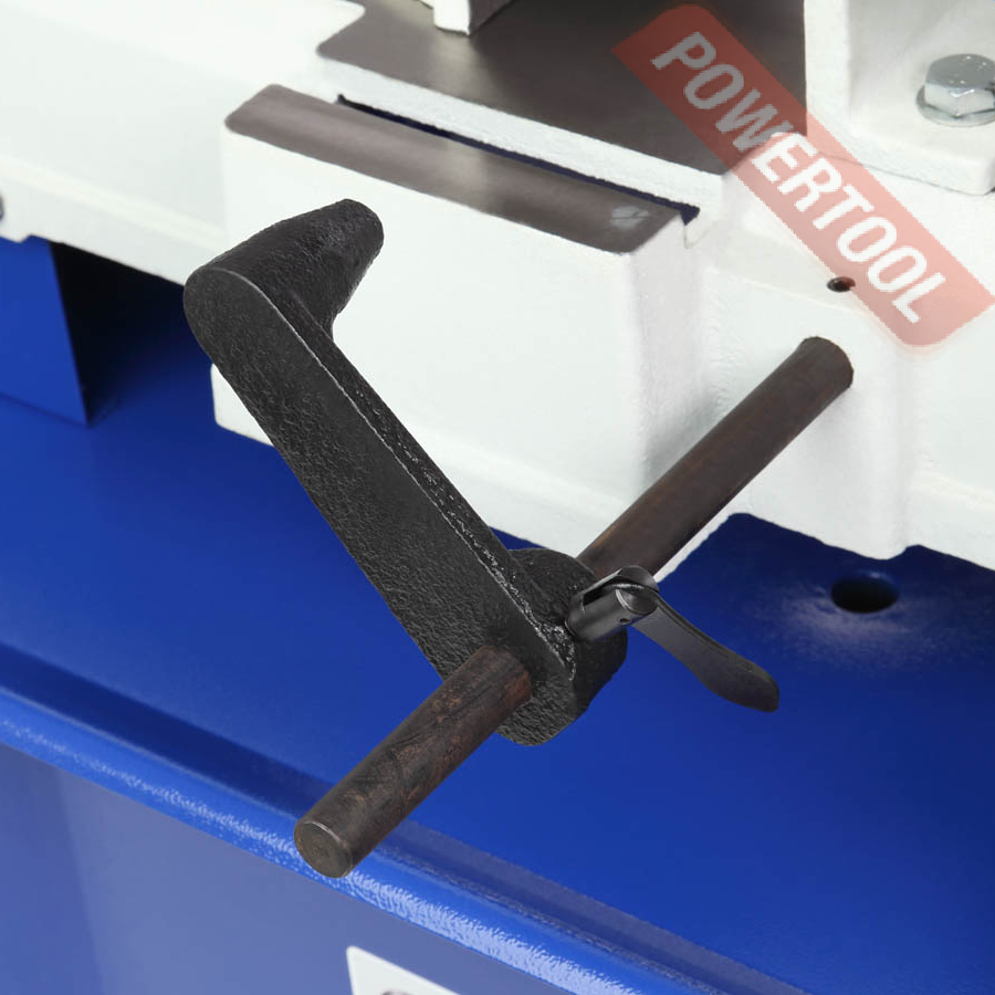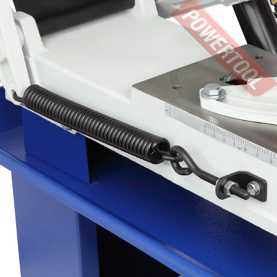 Пильная рама опускается за счет гидроразгрузки. В зависимости от вида распиливаемого материала производится настройка скорости опускания пильной рамы. Для этого используется ручка регулировки, расположенная на гидроцилиндре. Автоматический выключатель останавливает привод пилы после окончания пропила. Данная система значительно облегчает работу со станком, особенно при пилении серии деталей. Подъем пильной рамы осуществляется вручную, компенсирующая пружина облегчает подъемное усилие.