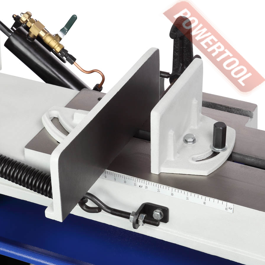 Ограничитель длины (упор) дает возможность быстро выставить нужный размер заготовки и получать детали с высокой степенью повторяемости.