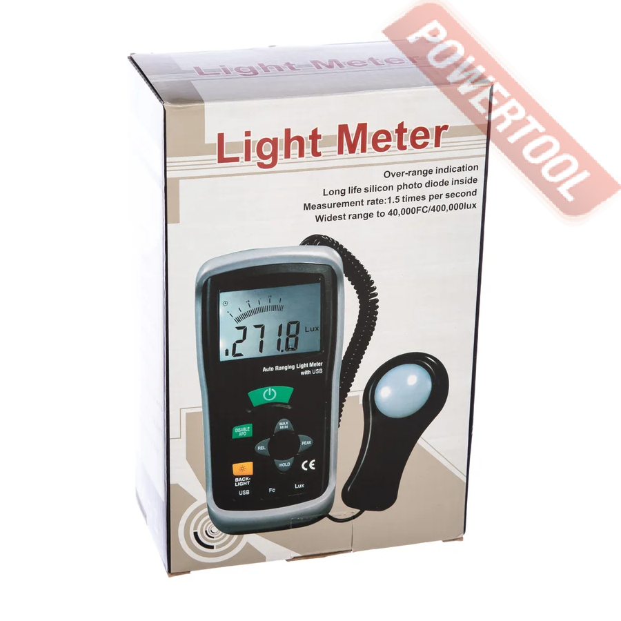 - Диапазон измерения освещенности от 0.1 люкс до 0.1 килолюкс или от 0.01 фут-канделы до 0.01 килофут-канделы.