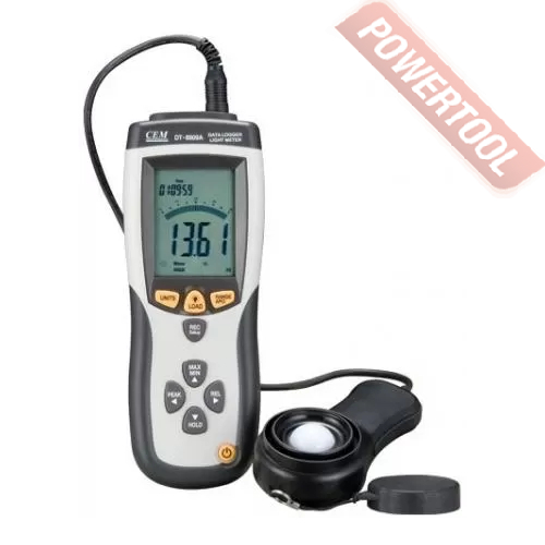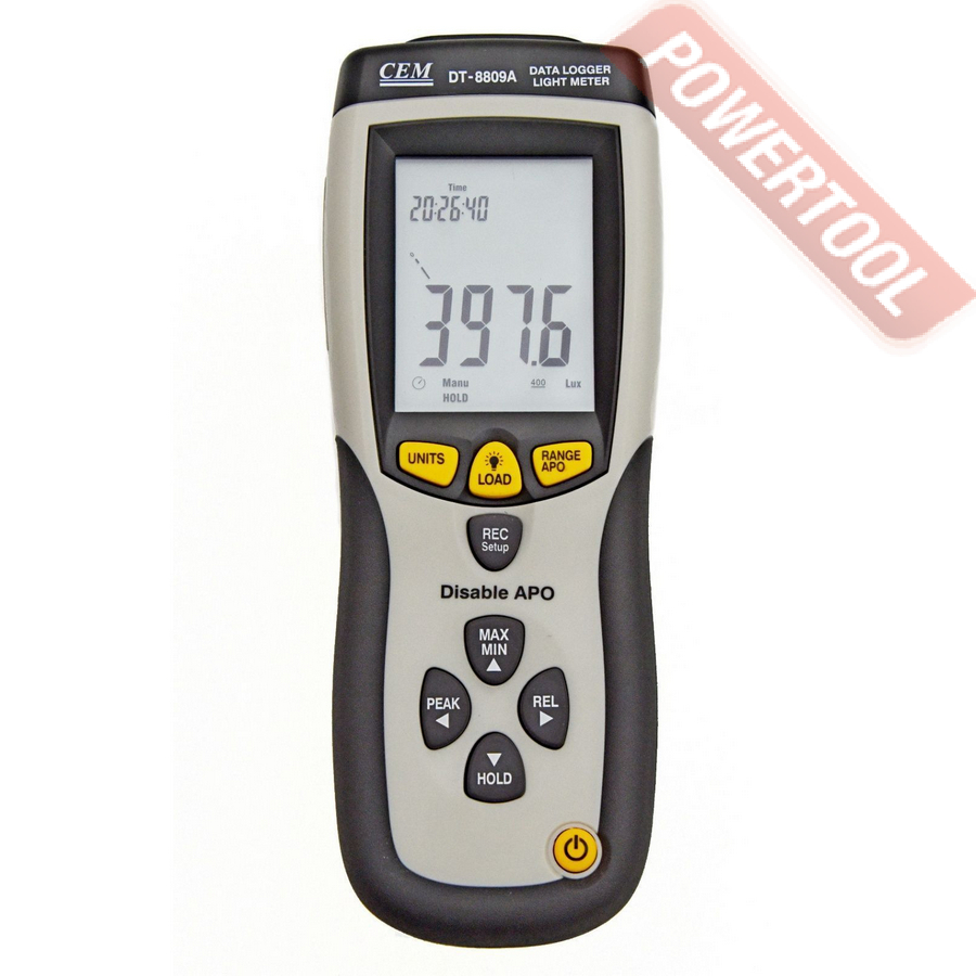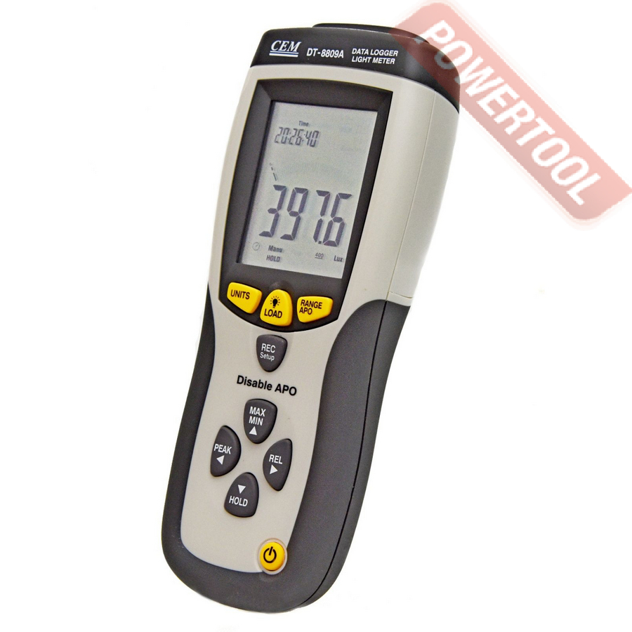 Люксметр CEM DT-8809A с режимом регистрации является точным инструментом, предназначенным для измерения освещенности (люкс, фут-кандела) в полевых условиях. Спектральная чувствительность люксметра соответствует относительной спектральной световой эффективности CIE. Измеритель освещенности полностью скорректирован по косинусу от ошибки при измерении освещенности, создаваемой светом, падающим под углом. Люксметр DT-8809A характеризуется компактными размерами, прочностью и эргономичностью. Светочувствительным компонентом в приборе является силиконовый фотодиод со стабильными характеристиками и длительным сроком службы, оснащенный спектральным фильтром.
