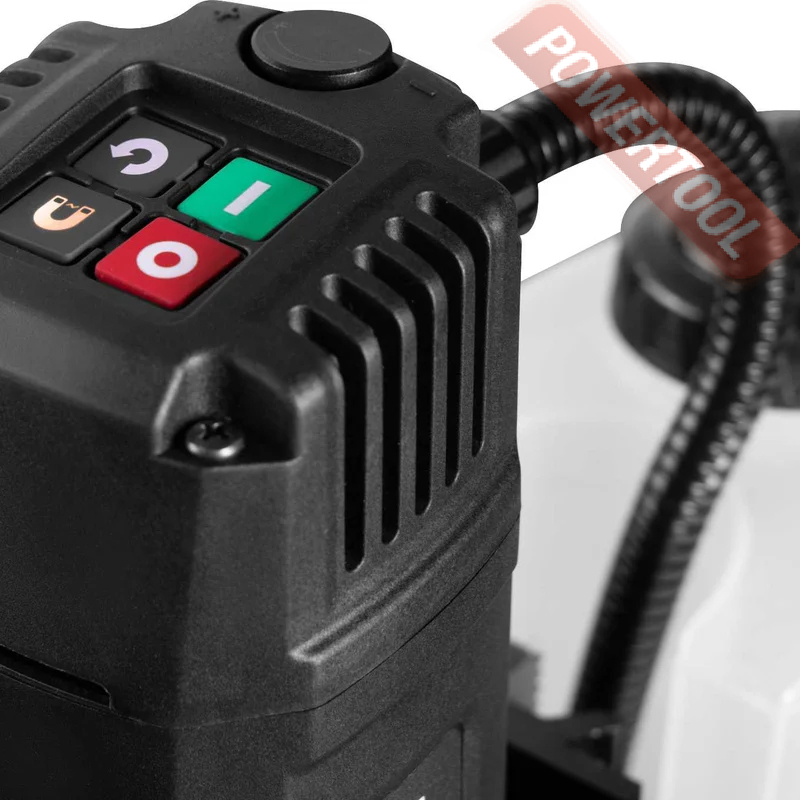 Магнитный сверлильный станок HEDEN DM-36X выполняет сверление корончатыми сверлами диаметром до 35 мм. Станок надежно фиксируется на горизонтальных стальных поверхностях благодаря мощной магнитной основе.