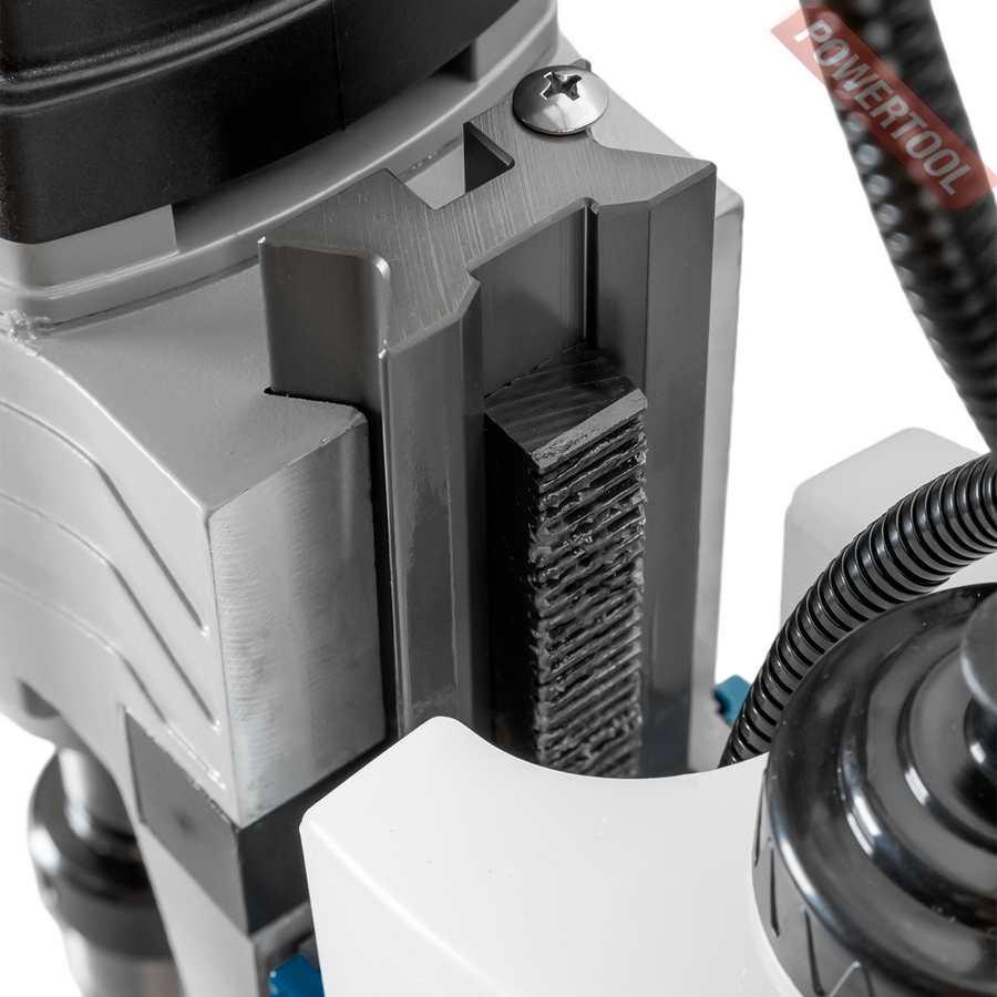 - Направляющие типа «двойной ласточкин хвост» позволяют перемещать и закреплять привод в любом положении для работы с длинными спиральными сверлами или сверления ниже уровня основания станка.