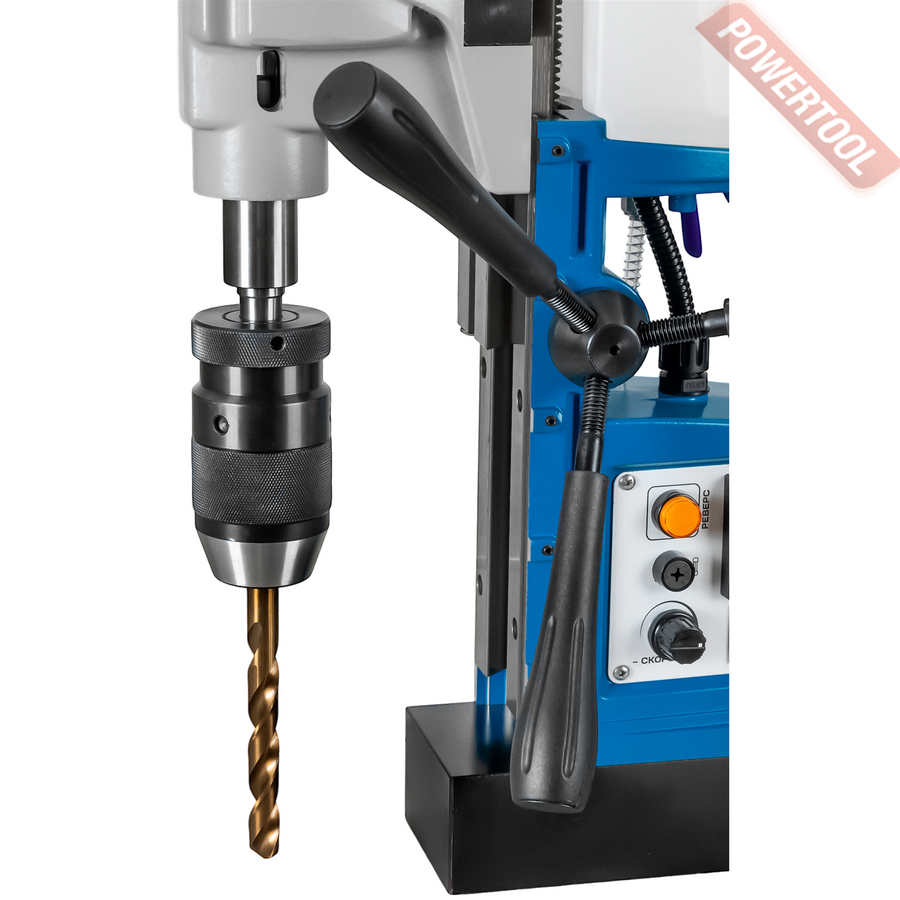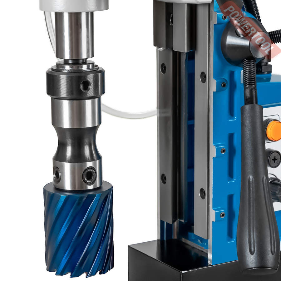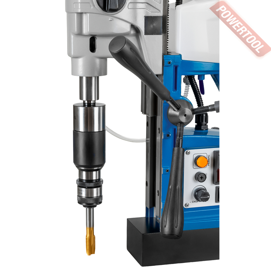 Магнитный сверлильный станок HEDEN DM-50V2 выполняет сверление корончатыми сверлами диаметром до 50 мм и спиральными сверлами диаметром до 22 мм, а также нарезание резьбы до М20.