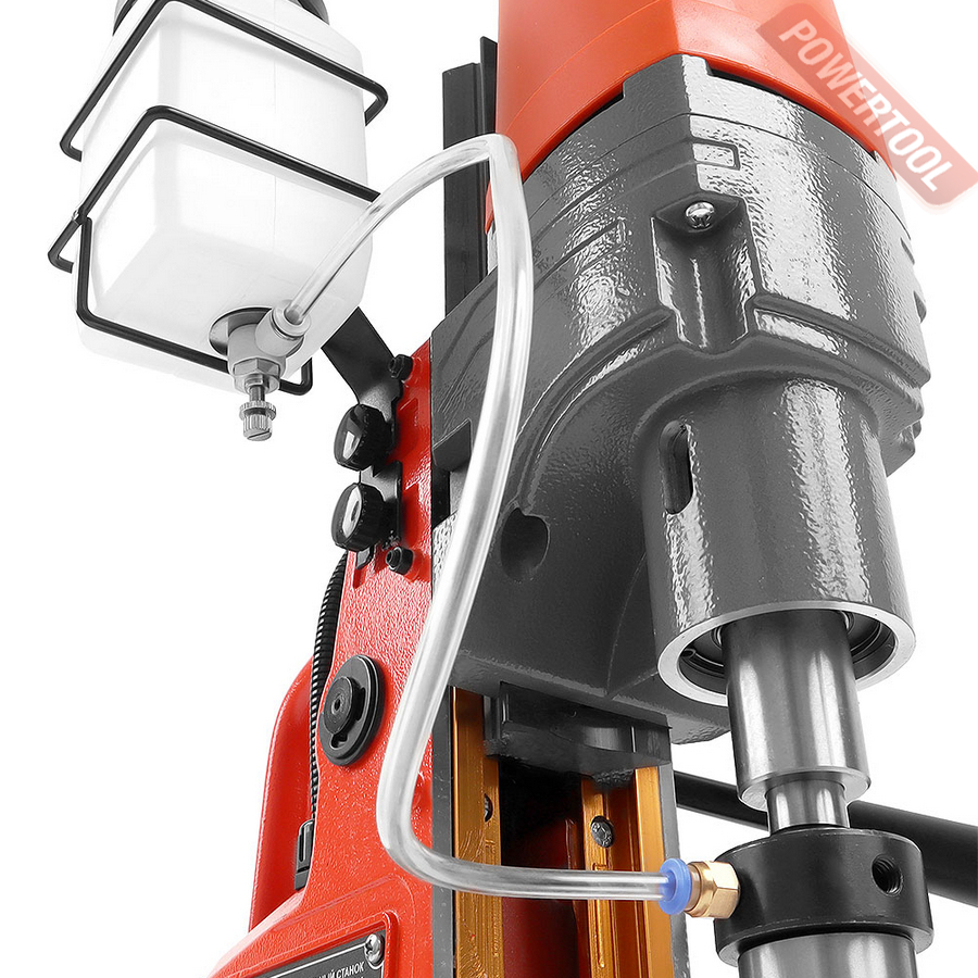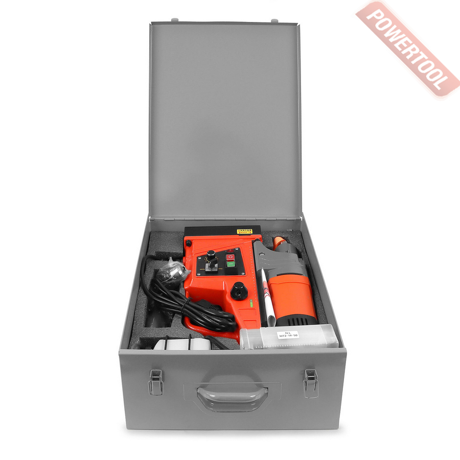 Магнитный сверлильный станок MESSER MM-60RE предназначен для сверления больших отверстий в толстом листовом металле и в различных металлоконструкциях на горизонтальных, вертикальных и иных направлениях. Сверлильный станок используется в тех случаях, когда невозможно использовать ручные электродрели или традиционные сверлильные станки. Станок имеет плавный пуск, регулировку скорости, поддержание оборотов при нагрузке и реверс. Расширенная комплектация станка (в комплект входит трехкулачковый патрон и адаптер, набор шестигранных ключей, что позволяет не отвлекаться на поиск вспомогательного инструмента, а сразу приступать к работе) позволяет работать не только корончатыми, но и спиральными сверлами, а при наличии специального патрона возможно нарезать внутреннюю резьбу. Металлический кейс удобен для хранения и транспортировки станка.
