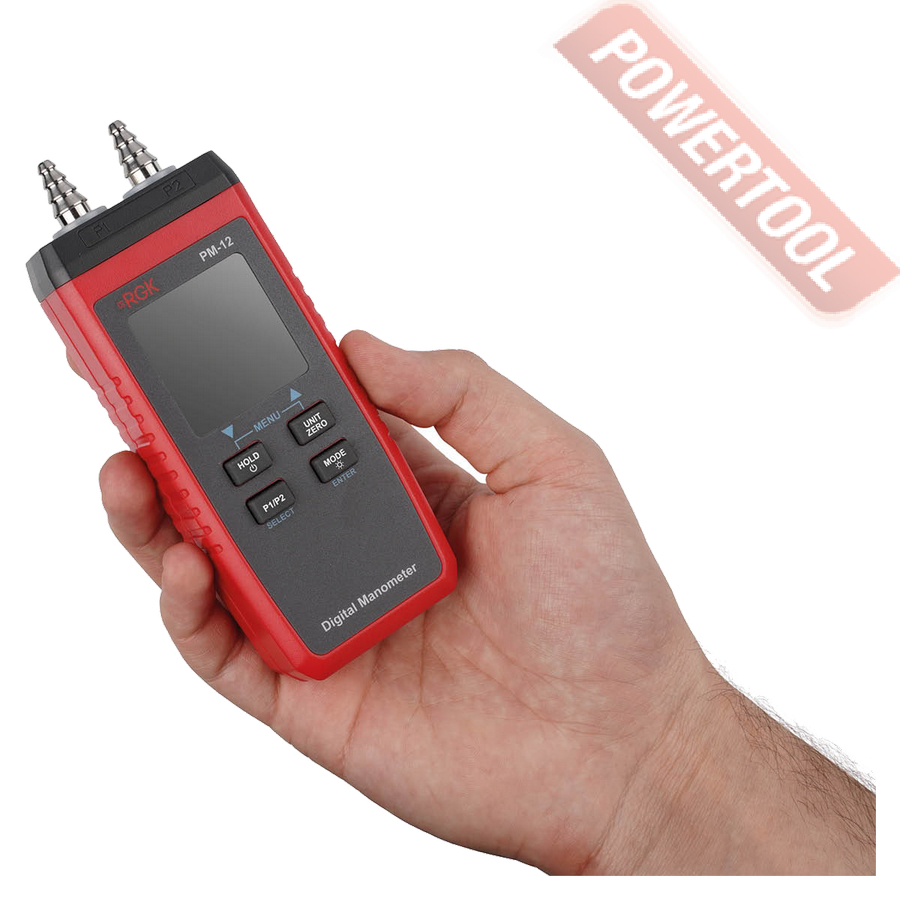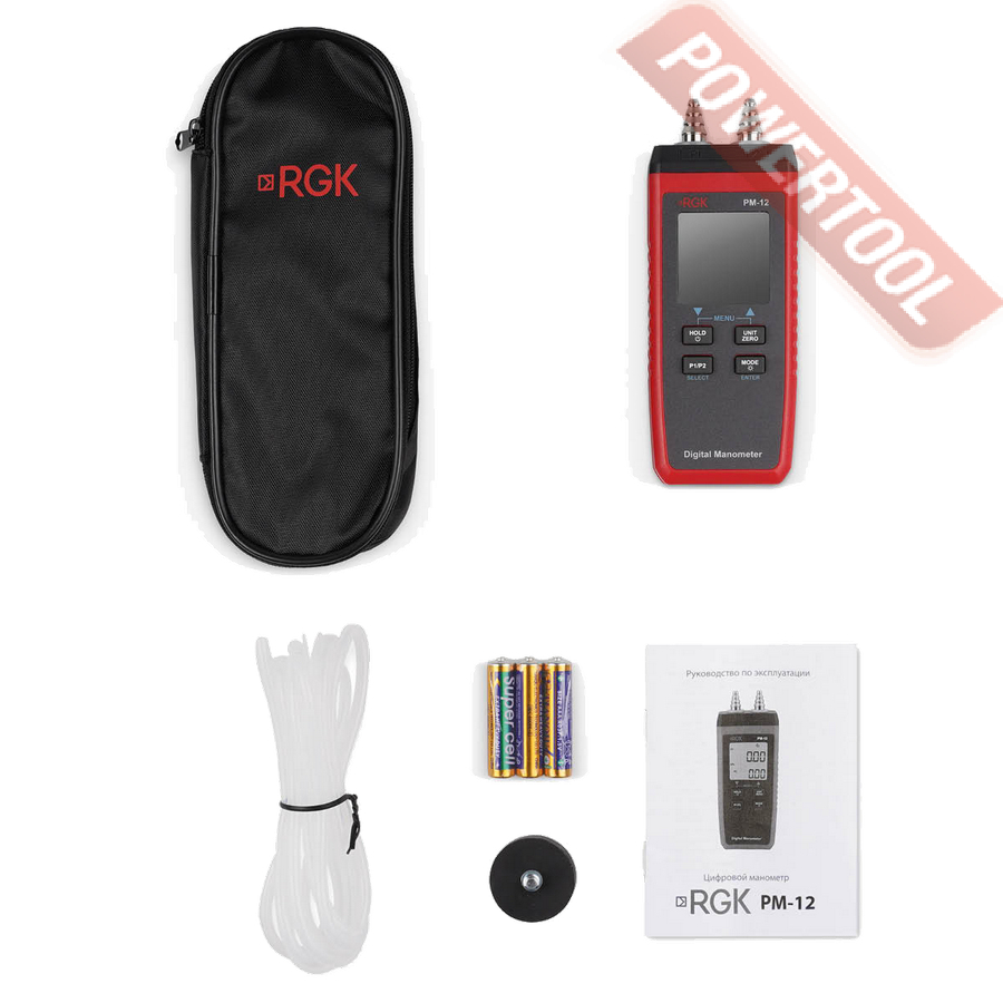 Манометр дифференциальный RGK PM-12 с поверкой - двухканальный прибор для измерения манометрического и дифференциального давления, который часто используется при настройке и пусконаладке систем вентиляции, отопления и любых других, где есть движение воздушных масс.