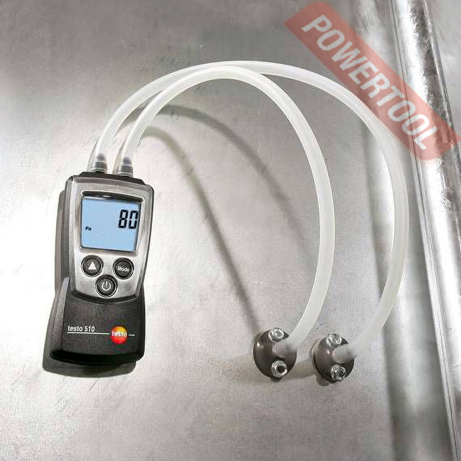 Манометр дифференциальный TESTO 510 с поверкой поставляется в комплекте с соединительными шлангами, защитной крышкой, батареей и заводским протоколом калибровки. Прибор измеряет давление до 100 гПа, чего достаточно для проверки работоспособности систем кондиционирования и вентиляции.
