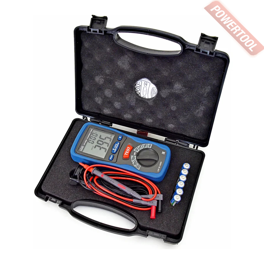 Мегаомметр цифровой CEM DT-5500 - это очень простой в эксплуатации прибор, позволяющий вам быстро провести испытания сопротивления изоляции током 1 мА при номинальном напряжении, а также прозвонить целостность цепи током 200 мА. Этот измеритель сопротивления способен определять свойства изоляционных материалов с сопротивлением до 2000 МОм. Прибор оснащен большим двустрочным жидкокристаллическим дисплеем, обеспечивающим хорошую видимость показаний при любых условиях освещения. Подсветка дисплея позволит вам работать даже в слабоосвещенных и темных помещениях.