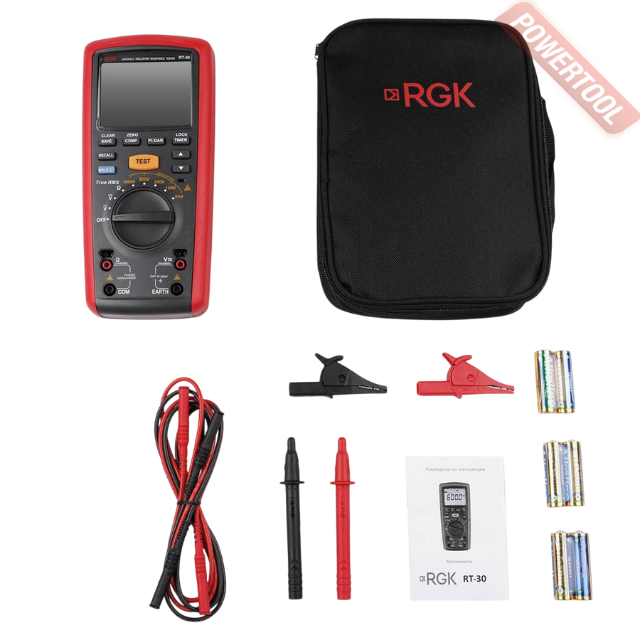 - 1. Мегаомметр цифровой с поверкой RGK RT-30.