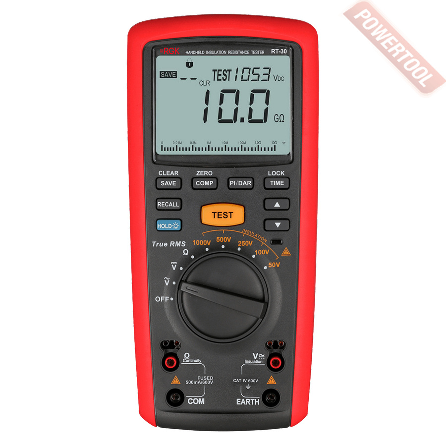 Мегаомметр цифровой с поверкой RGK RT-30 - прибор для электротехников и специалистов по ремонту, который используется для быстрой оценки состояния изоляции силовых кабелей. Чаще всего устройство применяется для техобслуживания промышленного оборудования (электродвигателей, трансформаторов) и сетей, в сервисных центрах по ремонту электроники и при работе с электрическими системами обогрева пола.