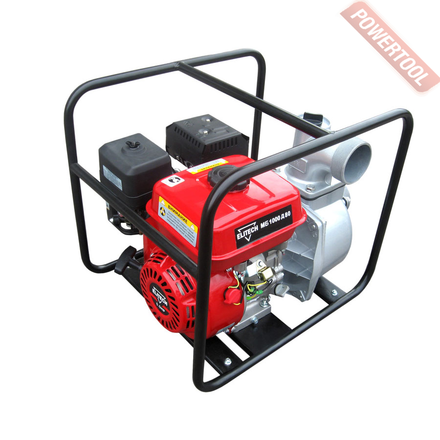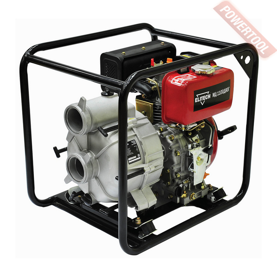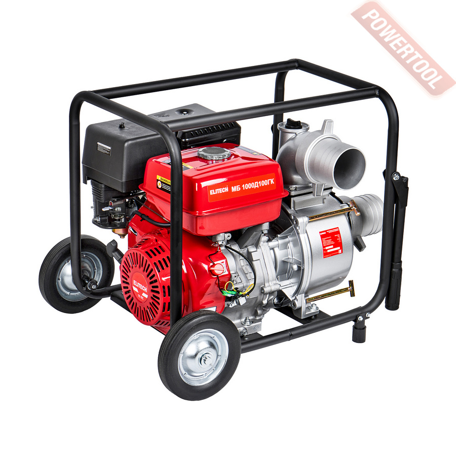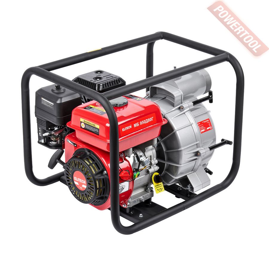 - Мотопомпа для грязной воды. Главное отличие - более высокая производительность и пропускная способность. Через грязевую помпу могут проходить твердые частицы диаметром около 2,5 см. Еще одна полезная опция таких устройств - быстрый доступ к насосу для извлечения твердых предметов, размер которых превышает его пропускные возможности. Производительность бытовых помп для перекачки грязной воды может достигать 2 000 литров в минуту при высоте подъема до 35 метров. Диаметры входного и выходного патрубков у них находятся в диапазоне от 50 до 100 мм.
