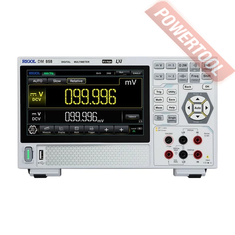 Мультиметр цифровой профессиональный RIGOL DM858 – многофункциональный измеритель лабораторного класса в настольном исполнении, обладающий расширенными возможностями по отладке и тестированию электросилового оборудования и электронных устройств. Прибор оснащен графическим сенсорным дисплеем с 5,5-разрядной индикацией и набором интерфейсов для интеграции в состав автоматизированных испытательных систем, сочетая в себе гибкость, точность и компактность.