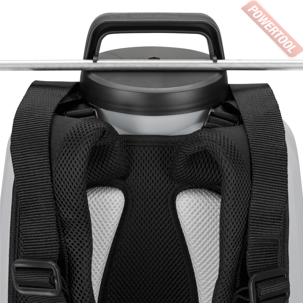 - Бак из сверхпрочного полипропилена HD обладает высокой устойчивостью к агрессивным химикатом, а также практически не подвержен деформации. Большой объем бака дает возможность в кротчайшие сроки обработать значительные площади зеленых насаждений, не отвлекаясь на частый долив раствора. Анатомическая форма бака и мягкие регулируемые плечевые ремни делают работу максимально комфортной.