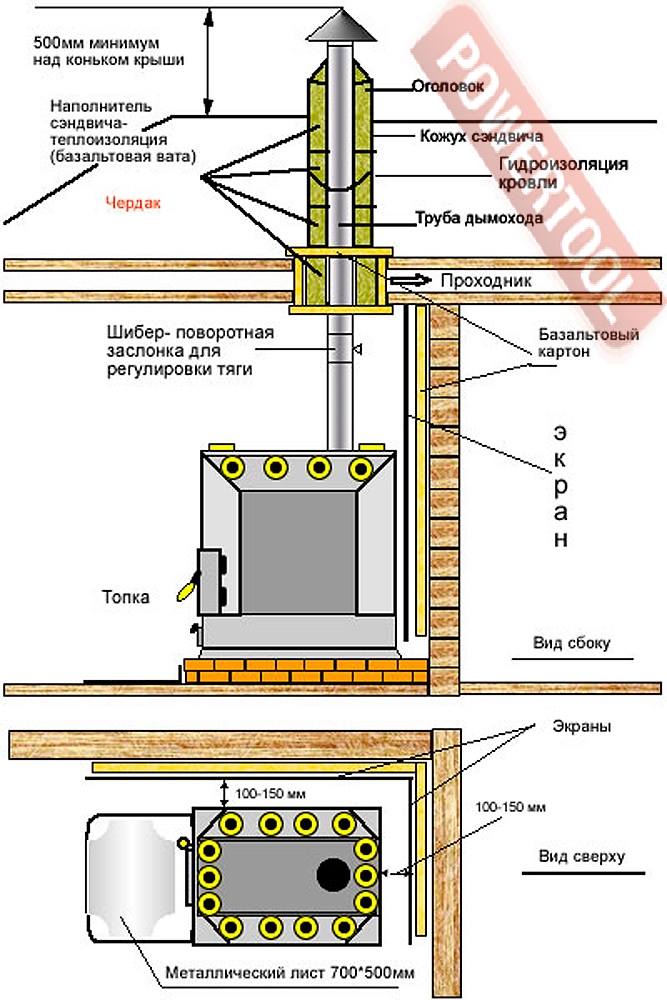 - В целях пожарной безопасности и регулирования газодинамического процесса в рабочей печи на дымовой канал устанавливается шибер, в доступном для эксплуатации месте.