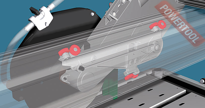 - Направляющая рельса моста выполнена из нержавеющей стали для обеспечения наилучшего скольжения. с применением экструзии для высокого сопротивления на кручение. Рельс оснащен взаимозаменяемыми подшипниками из нержавеющей стали и миллиметровой линейкой для быстрого и точного выполнения реза.