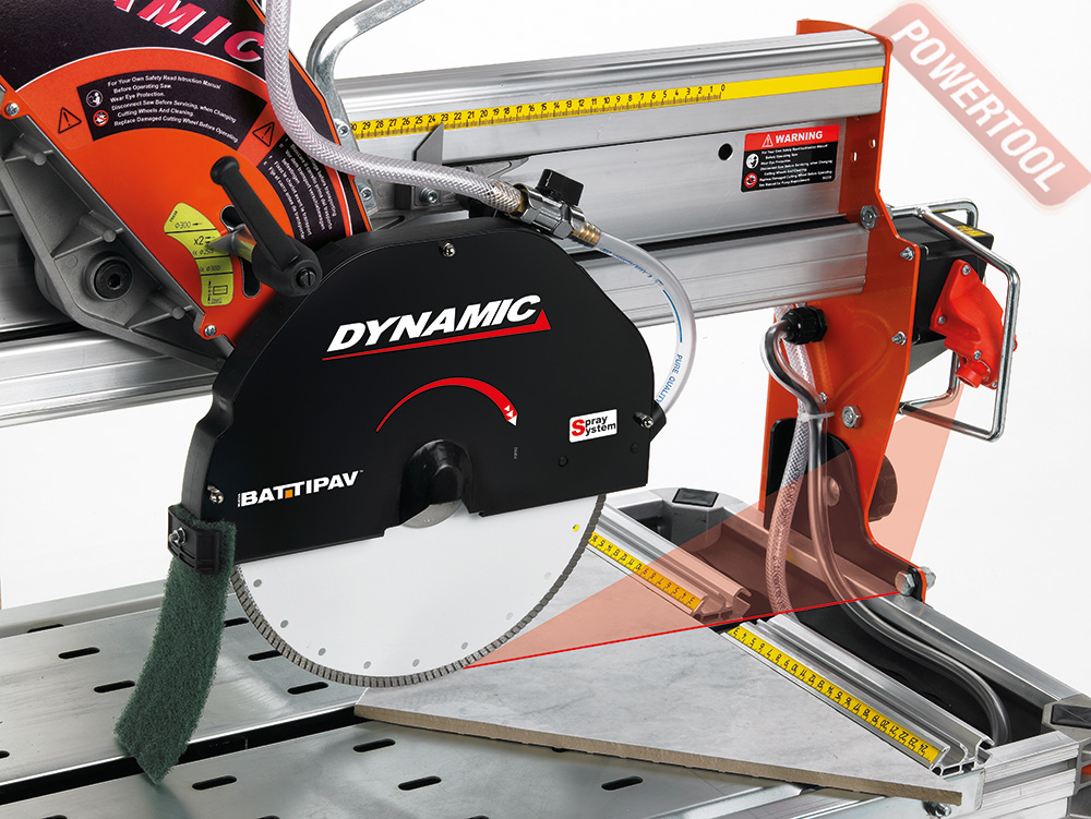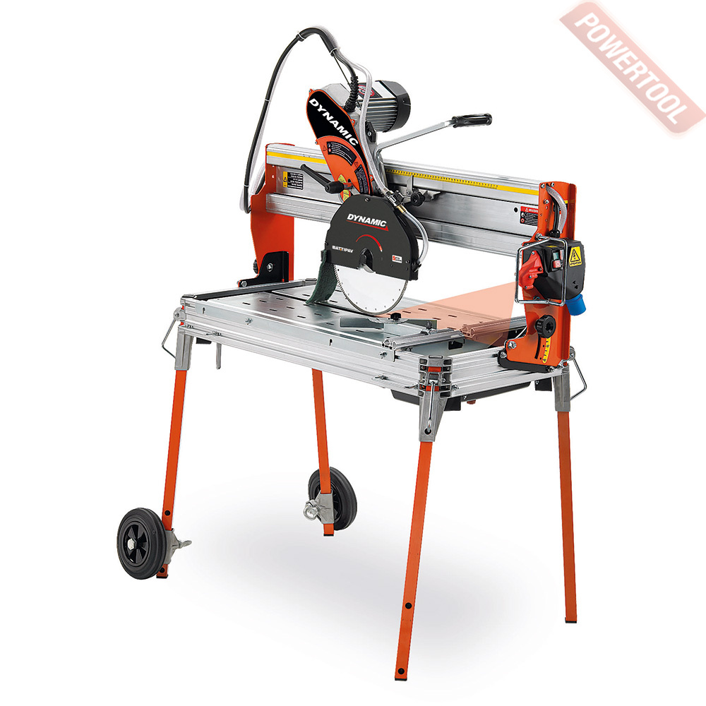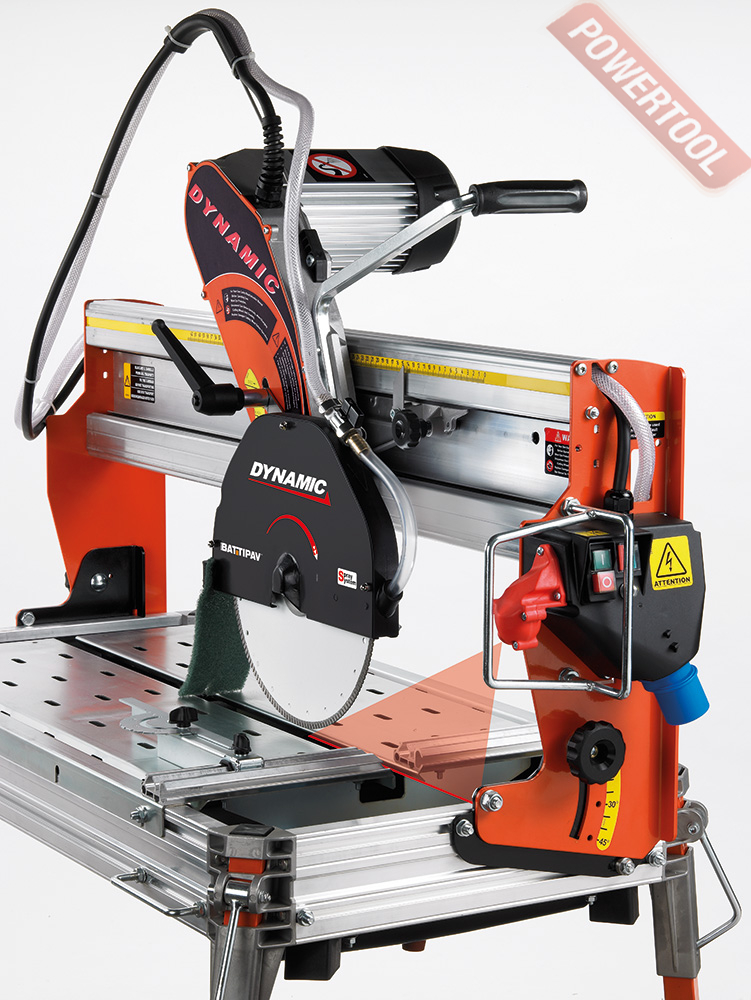 Плиткорез электрический BATTIPAV Dynamic 760S с верхней направляющей предназначен для работы с кирпичом, камнем, гранитом, мрамором, керамикой и фарфором. Может производить рез под углом до 45 градусов. Отличаются наличием поликлиновой ременной передачи от двигателя к режущему диску, которая способна работать без обслуживания 24000 часов. Станки могут работать с дисками диаметром 250 или 300 мм. Принудительная система охлаждения с циркуляционным насосом S3 продлевает ресурс алмазного диска и смывает пыль в картер. Модели с индексом S отличаются наличием лазерной метки для удобства и точности резки, а также колесами для транспортировки, идущими в комплекте поставки.