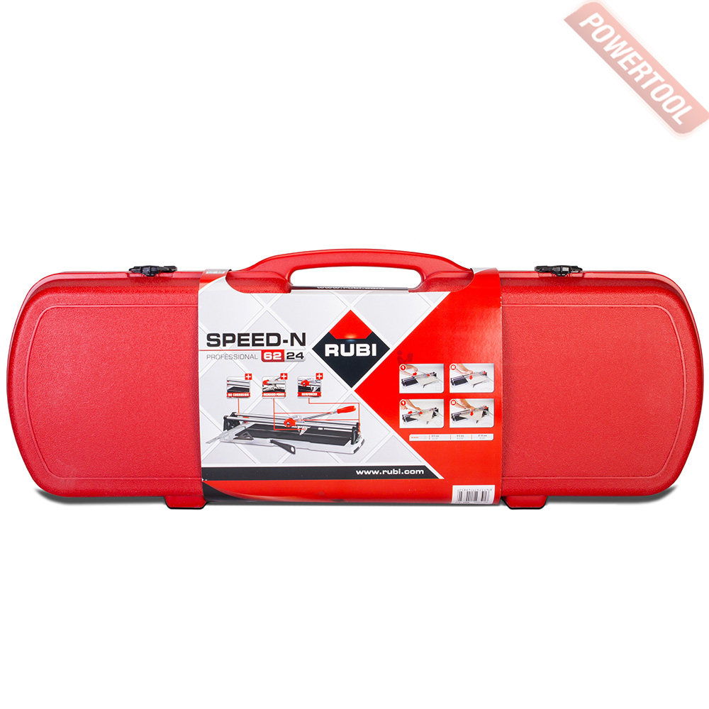 Плиткорез ручной RUBI Speed-62 N с кейсом предназначен для резки кафеля и эсмальтированного греса, но также на данных станках возможно резать и керамогранит. Ручные плиткорезы SPEED-N - станки с двумя параллельными направляющими, которые обеспечивают идеальную видимость линии разметки и разлома заготовки. Станки оснащены подвижным разделителем, который идеально подходит для резки по диагонали. Плиткорезы SPEED-N являются наиболее многофункциональными в своей категории.