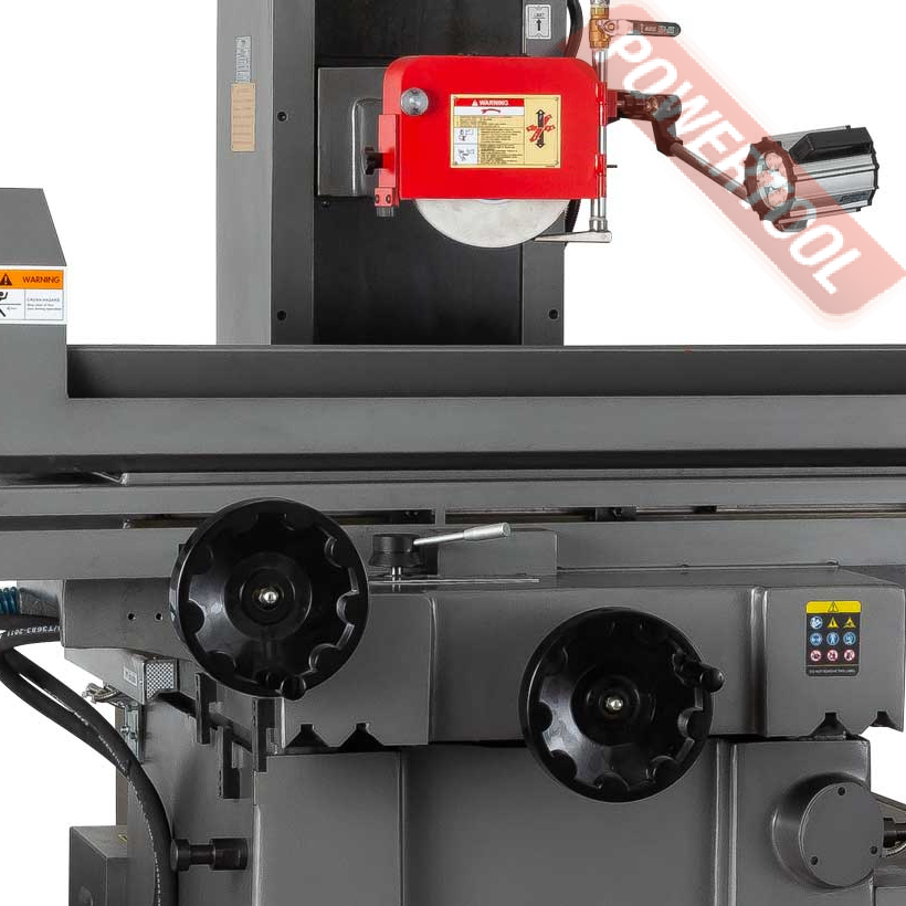 Продольное и поперечное перемещение стола выполняется в автоматическом режиме. Вертикальное перемещение шлифовального круга осуществляется вручную или в автоматическом режиме. За вращение шпинделя отвечает главный двигатель мощностью 2200 Вт. Мощность двигателя гидростанции 750 Вт, объем гидравлической системы – 60 литров. Мощность насоса подачи СОЖ 40 Вт. Объем бака СОЖ 50 л.