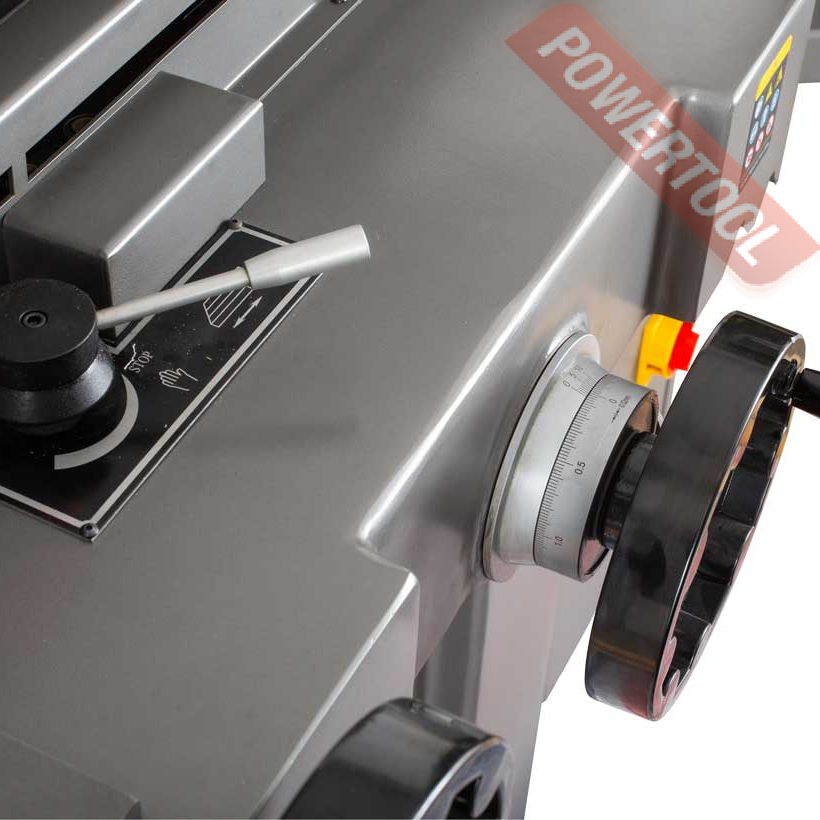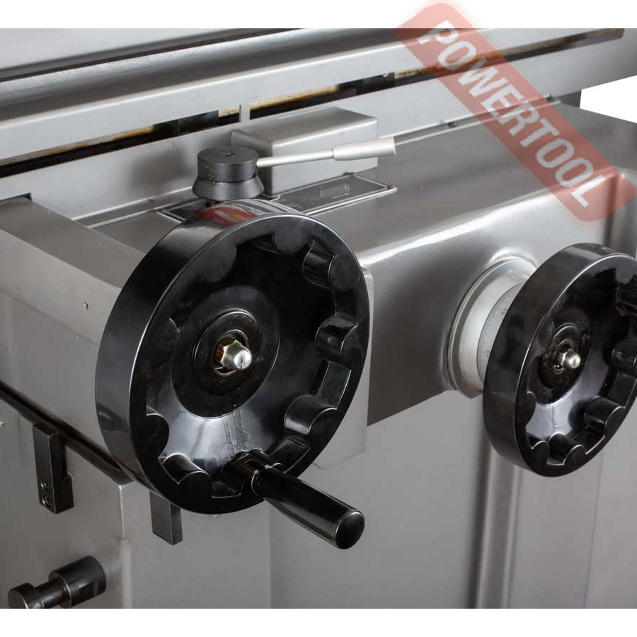 Стол приводится в движение вручную или через гидравлический привод (в правом или левом направлении), скорость плавно изменяется с помощью регулировочного рычага, расположенного на салазках. В поперечном направлении движение стола осуществляется вручную или двигателем через ходовой винт. Шлифовальная голова перемещается вручную маховиком или в автоматическом режиме с помощью серво-двигателя с подачей в диапазоне 0,005 до 0,05 мм.