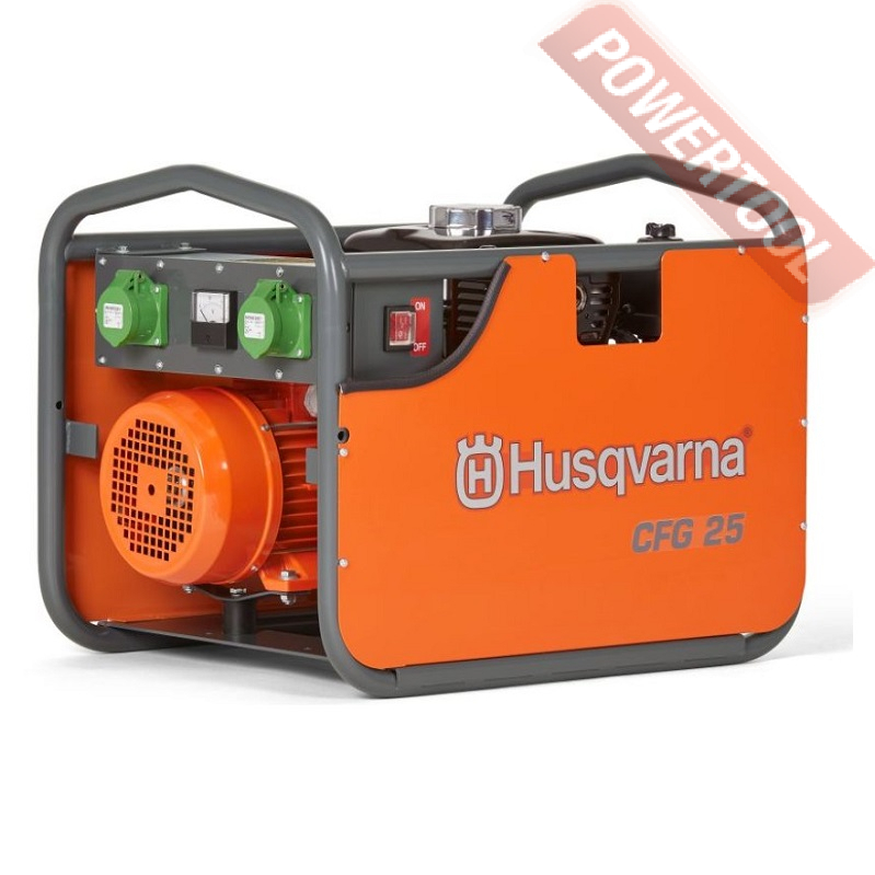 Преобразователь частоты и напряжения тока бензиновый HUSQVARNA CFG 25 - способен питать от одного до четырех вибраторов серии AX и Vibrastar, выдавая напряжение 42В - 200Гц. Генератор снабжен двигателем Honda, имеет защитную раму.