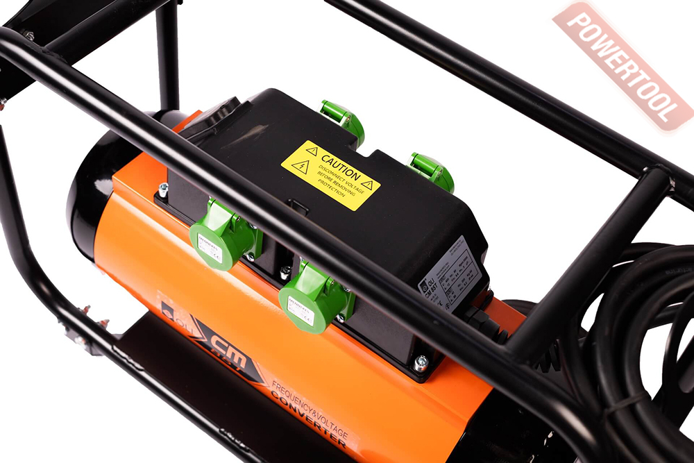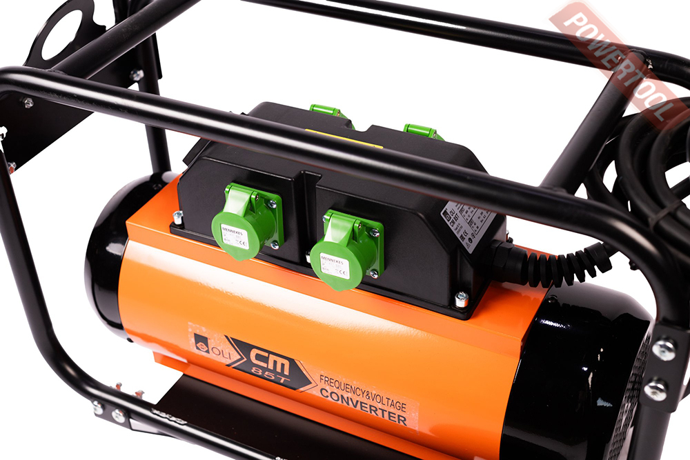 Преобразователь напряжения и частоты состоит из из электродвигателя, соединенного с генератором с постоянным магнитом, который уменьшает трехфазное (380 В, 3 фазы) входное напряжение до 42 В, при этом повышая частоту до 200 Гц. Это необходимо для правильной работы электрических глубинных вибраторов и гарантирует безопасность оператора при работе с низковольтным оборудованием. Преобразователь предназначен для непрерывного режима работы.