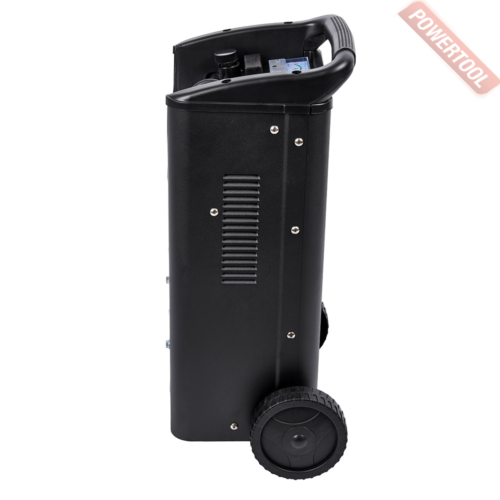 Пусковое и зарядное устройство для автомобилей с 12 / 24 В аккумулятором WET емкостью 40-700 Ач, стартовый пусковой ток 240 А, 2 режима тока зарядки нормальная / быстрая 18 / 40 А, однофазное 230 В, мощность зарядка / запуск 1,6 / 8 кВт, амперметр, защита от перегрева, перегрузки, изменения полярности, класс защиты IP20, размеры 350х250х600 мм, вес 13,2 кг, комплект электрокабелей с зажимами, колеса.