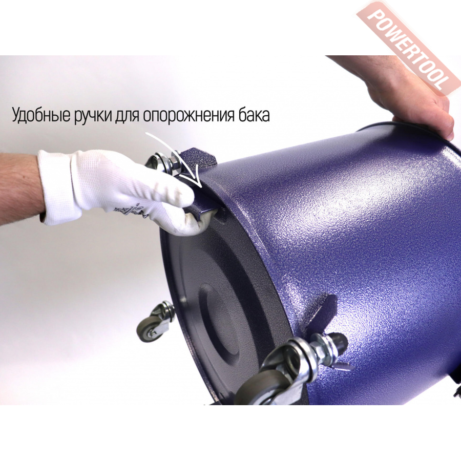 - Пылесос имеет бак для сбора загрязнений объемом 60 литров, что позволяет собирать большой объем загрязнений.
