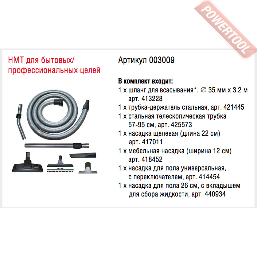 - Оснащается набором аксессуаров типа HMT для бытовых/ профессиональных целей. Все насадки, включая шланг размещаются на пылесосе и всегда находятся под рукой.