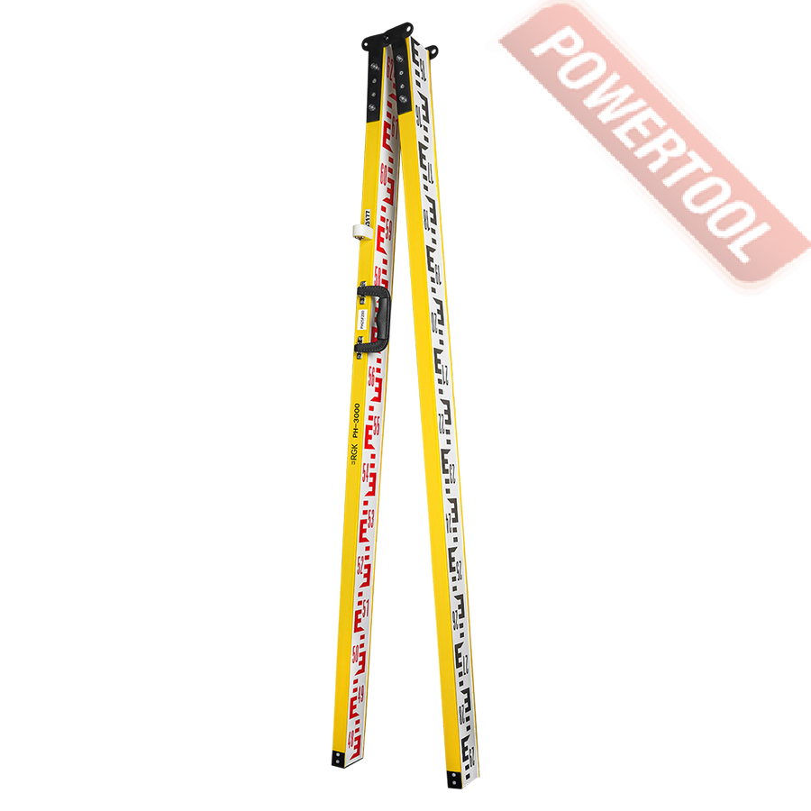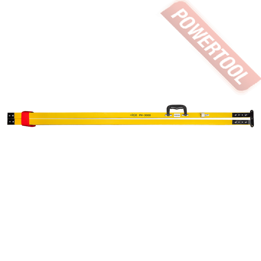 Рейка нивелирная RGK PH-3000 выполнена по классической схеме из двух шарнирно соединенных брусьев, которые окантованы планками и снабжены металлическими пятками, защищающими торцы от истирания. В рабочем положении изделие раскладывается в прямую линию, позволяя считывать показания с шашечных E-шкал с лицевой и тыльной стороны, обеспечивая измерение превышений путем выполнения серии замеров с помощью оптических нивелиров.