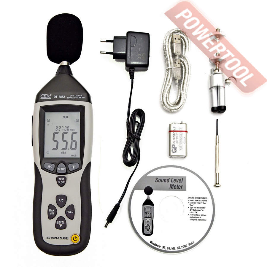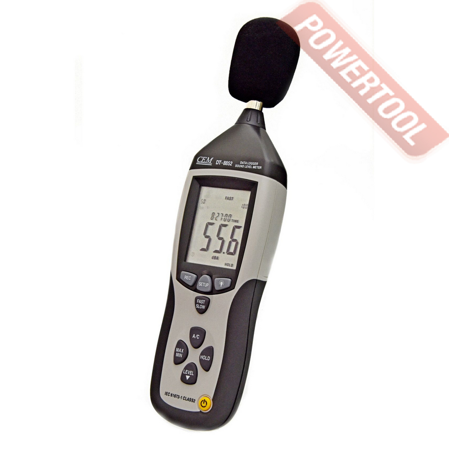 Особенности модели. От предшествующих шумомеров в линейке DT-8852 отличает ручная регулировка уровня тревоги и регистратор данных. Диапазон измерений девайса включает четыре частоты (Low 30-80, Medium 50-100, High 80-130, Auto 30-130 дБ). Учитывает временные характеристики в форматах Slow и Fast — 1 сек и 125 мсек соответственно.