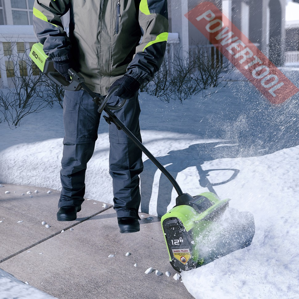 Снегоуборщик аккумуляторный GREENWORKS GD60SS30K4 идеально подойдет для очистки от снега территории перед домом, гаражом, а также веранд, дорожек и других мест!
