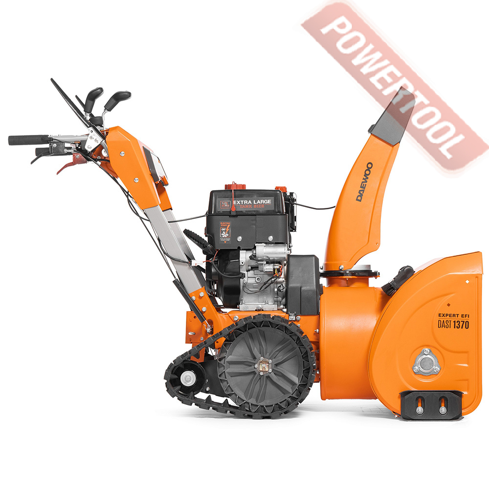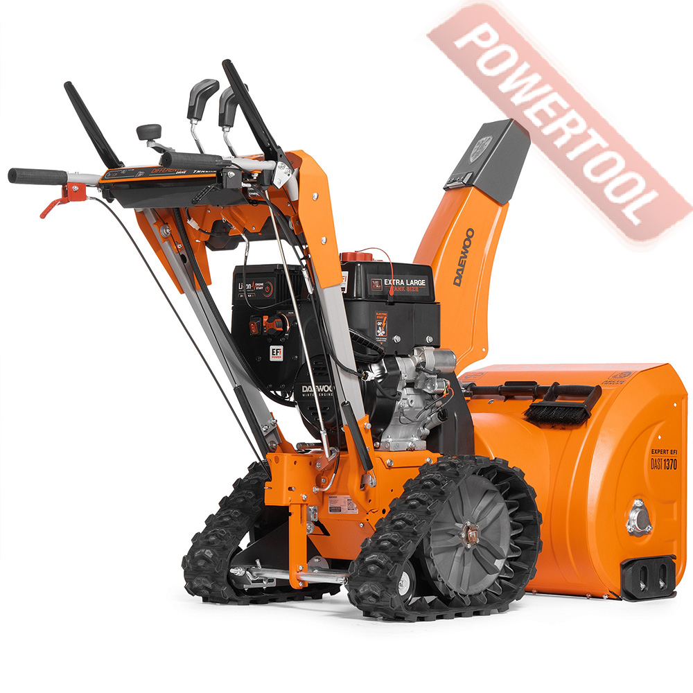 Снегоуборщик гусеничный самоходный DAEWOO Dast 1370 EFI специально разработан для использования при низких температурах в зимнее время и оснащен мощными двигателем. Предназначен для уборки и очистки дорог и других ровных твердых поверхностей от большого количества снежных масс, удаления снежных завалов, расчистки загородных участков дорог, тротуаров и загородных домов от выпавшего и наметенного снега.