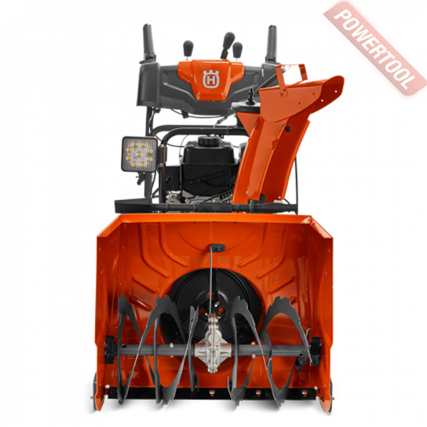- Светодиодные фонари, которые расположены в верхней части бензинового снегоуборщика Husqvarna, работа в темное время суток будет безопасной и удобной для оператора.