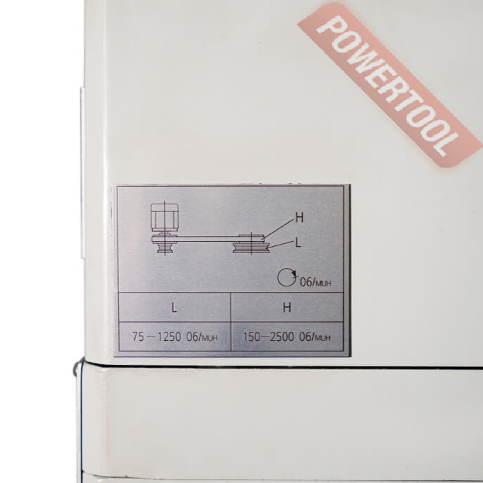 - Привод главного движения станка реализует вращение шпинделя диапазоне от 75 до 2500 об/мин, количество оборотов шпинделя в данных границах выбирается путем поворота ручки вариатора.