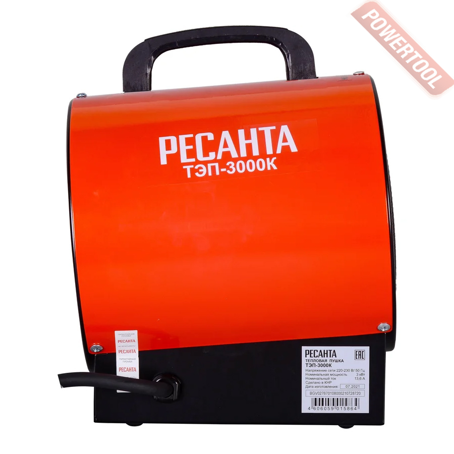 - 1. Тепловая пушка электрическая РЕСАНТА ТЭП-3000К.