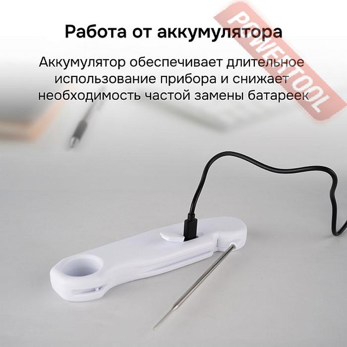 - Низкая эксплуатационная стоимость – контактный термометр запитывается от внутреннего аккумулятора, который подзаряжается через коннектор USB Type-C, благодаря чему нет необходимости тратить средства на регулярную покупку сменных батарей.