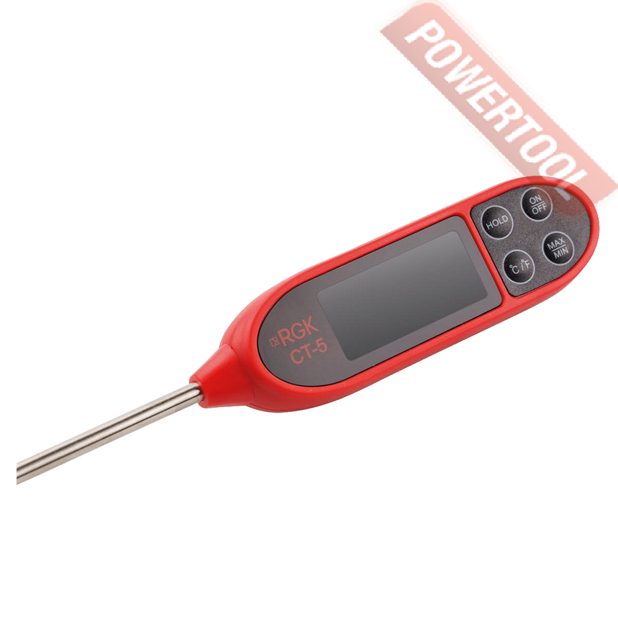 Термометр контактный пищевой RGK CT-5 с погружным зондом предназначен для быстрого измерения температуры в диапазоне от -30 до 250 градусов С с точностью до градуса. Основное назначение прибора - работа с пищевыми продуктами на всех стадиях производства, от закупки и проверки условий хранения сырья до контроля качества и приготовления готовых блюд.
