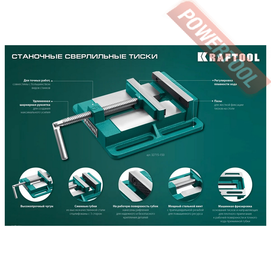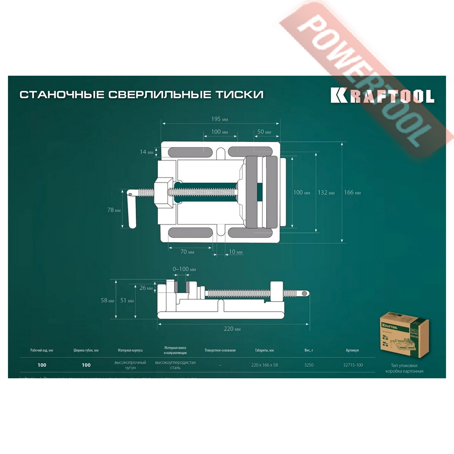 - 1. Тиски станочные сверлильные 100х100 мм KRAFTOOL.