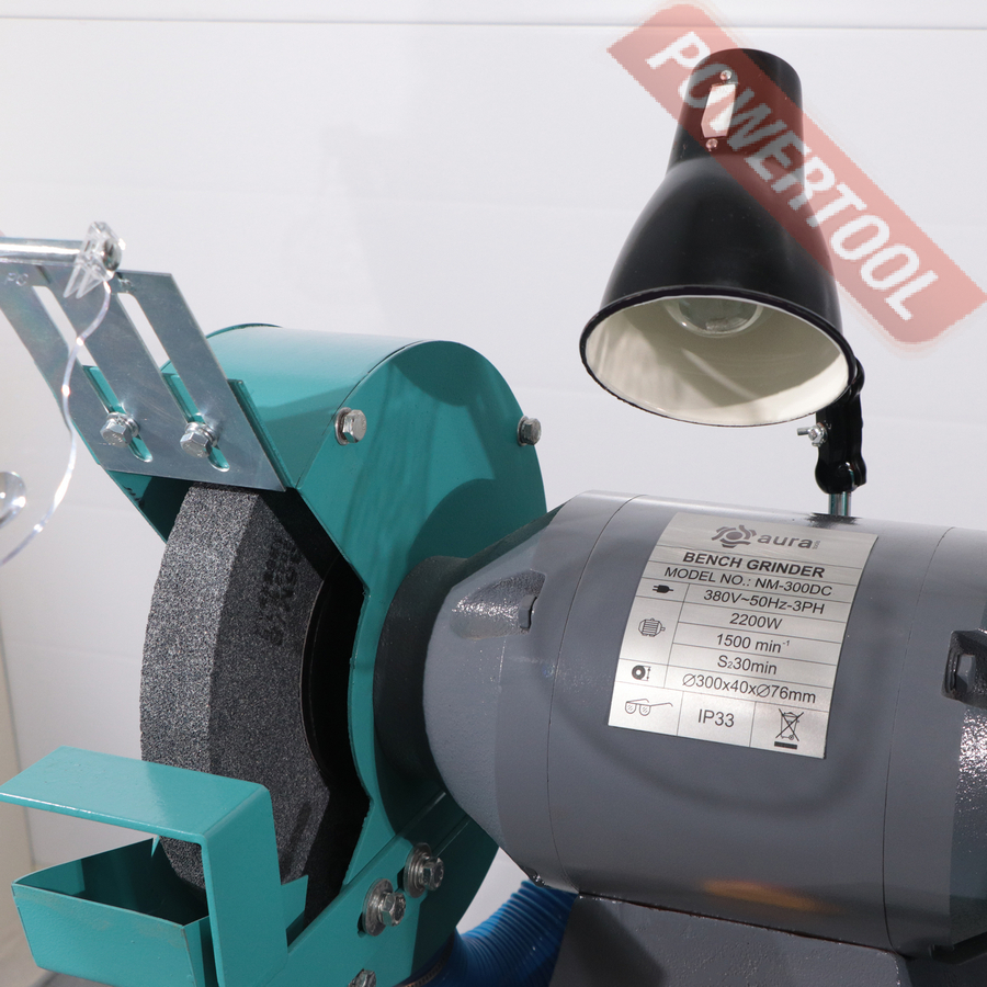 Заточной станок с пылесосом AURA TOOLS NM-300DC оборудован электродвигателем мощностью – 2.2 кВт с защитой IP 33 . Диаметр шлифовальных кругов – 300 мм. Станок оборудован светильником для освещения рабочей зоны и пылесосом для отвода и сбора абразивной пыли и металлической стружки. Мощность мотора вытяжной установки 500 Вт. Пыль собирается мешок, установленный в специальном бункере. Мешок опорожняется по мере необходимости. Мощный и надежный станок AURA NM-300DC станет отличным помощником в любом слесарном цеху, автосервисе или в инструментальной мастерской предприятия. А благодаря интегрированной в него вытяжной установки, избавит персонал от неизбежно возникающей при заточке или шлифовании пыли.